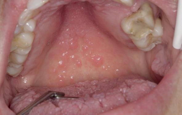 De patiënt meldde zich opnieuw in de praktijk met klachten: pijn, zwelling en een duidelijke intraorale infectie. Bij inspectie zag ik direct een probleemhet ging om een klassiek beeld van peri-implantair botverlies met een abces. Dit patroon van botverlies en infectie spiegelde sterk de gevolgen van thermische trauma.