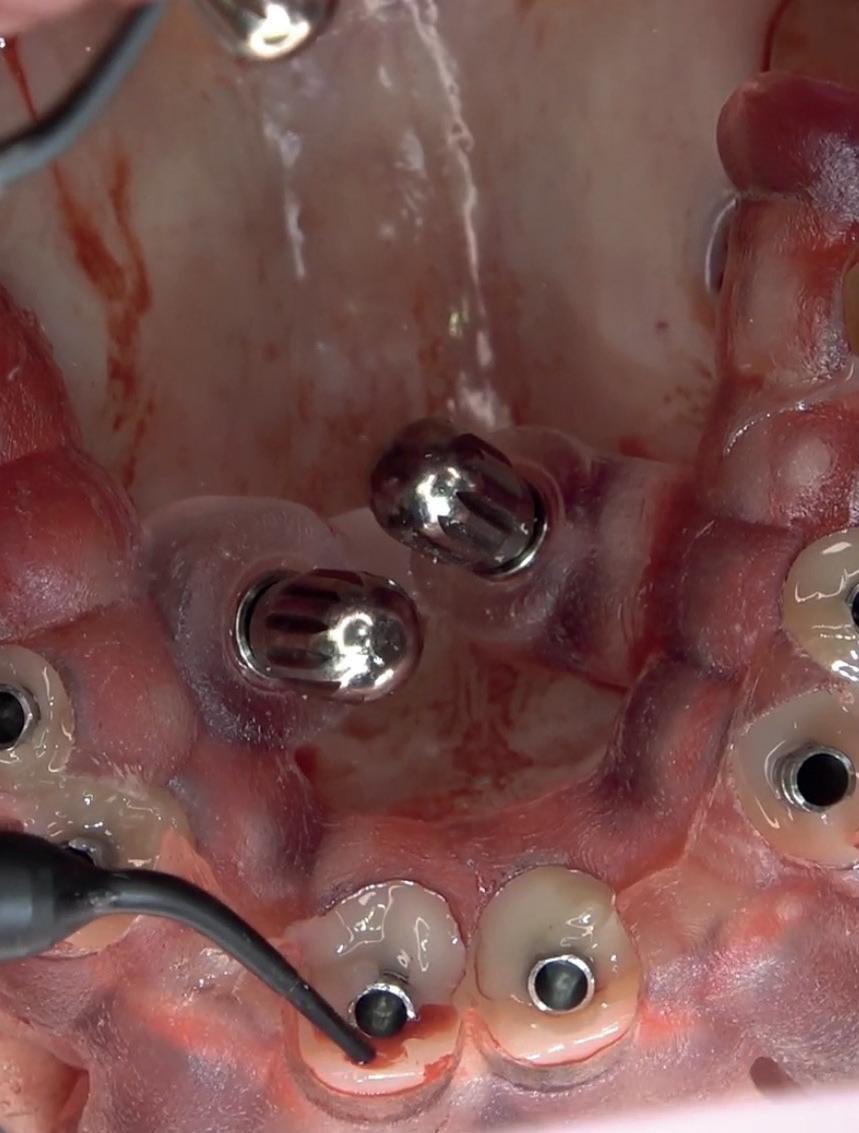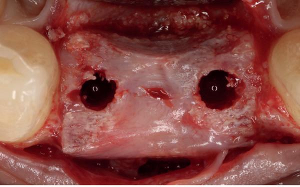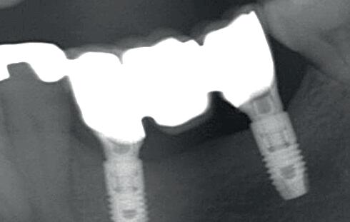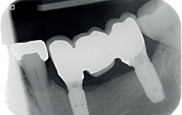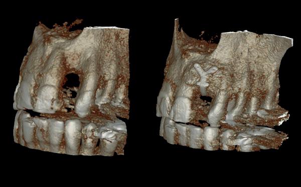 Bij klinisch en röntgenologisch onderzoek viel echter op dat radix van de 12 en 22 een convergerende (de radices staan dan naar mesiaal en naar elkaar toe) in plaats van divergerende (radices staan dan van elkaar af) stand had. Door deze convergerende stand van de radices was er in mesio-distale zin geen ruimte voor twee implantaten ter plaatse van de 11 en 21. Er werd daarom besloten, in tegenzin