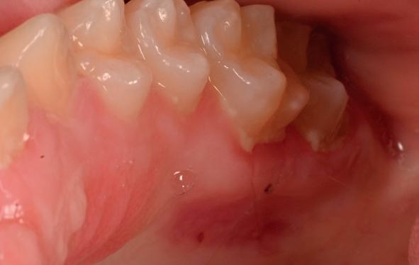Na een aantal maanden kwam hij weer langs. Er was opnieuw een uitstekende mondhygiëne en geen bloeding aanwezig, maar helaas wel weer een nieuwe caviteit. Ik besloot zijn medicatie op-