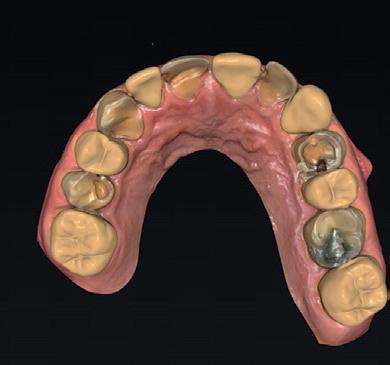 Voordat er gescand kon worden voor een etsbrug, werd een studiemodel vervaardigd om met de technicus te overleggen of er voldoende ruimte was voor 2 centrale incisieven in de mesio-distale zin en of er voldoende ruimte was in occlusie voor de vleugels van de etsbrug. Er hoeft enkel nog aan de 12 en 22 pala-