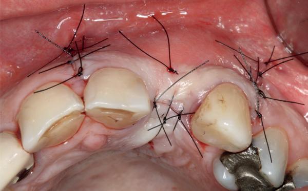 • Aanvulling zachte weefsels met de VISTA techniek en een vrij gingivatransplantaat uit het palatum links en direct dragen van de essix retainer