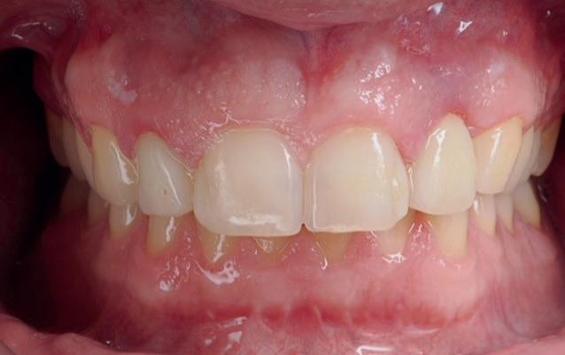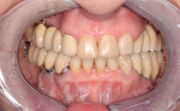 Een patiënt met een uitgebreide tandheelkundige voorgeschiedenis komt voor evaluatie van een langlopend behandeltraject. Door crowding, oud kroon- en brugwerk en een val op de voortand is er jarenlang gewerkt aan orthodontie met aligners, meerdere implantaten, wortelkanaalbehandelingen en tijdelijke kronen. De huidige klachten: niet goed kunnen kauwen, een noodkroon die telkens breekt, en esthetische zorgen over de lach. Het behandelplan omvat occlusale deprogrammering, composietopbouw van de onderkaak, definitieve kronen en mogelijk bleken. Een multidisciplinair traject richting