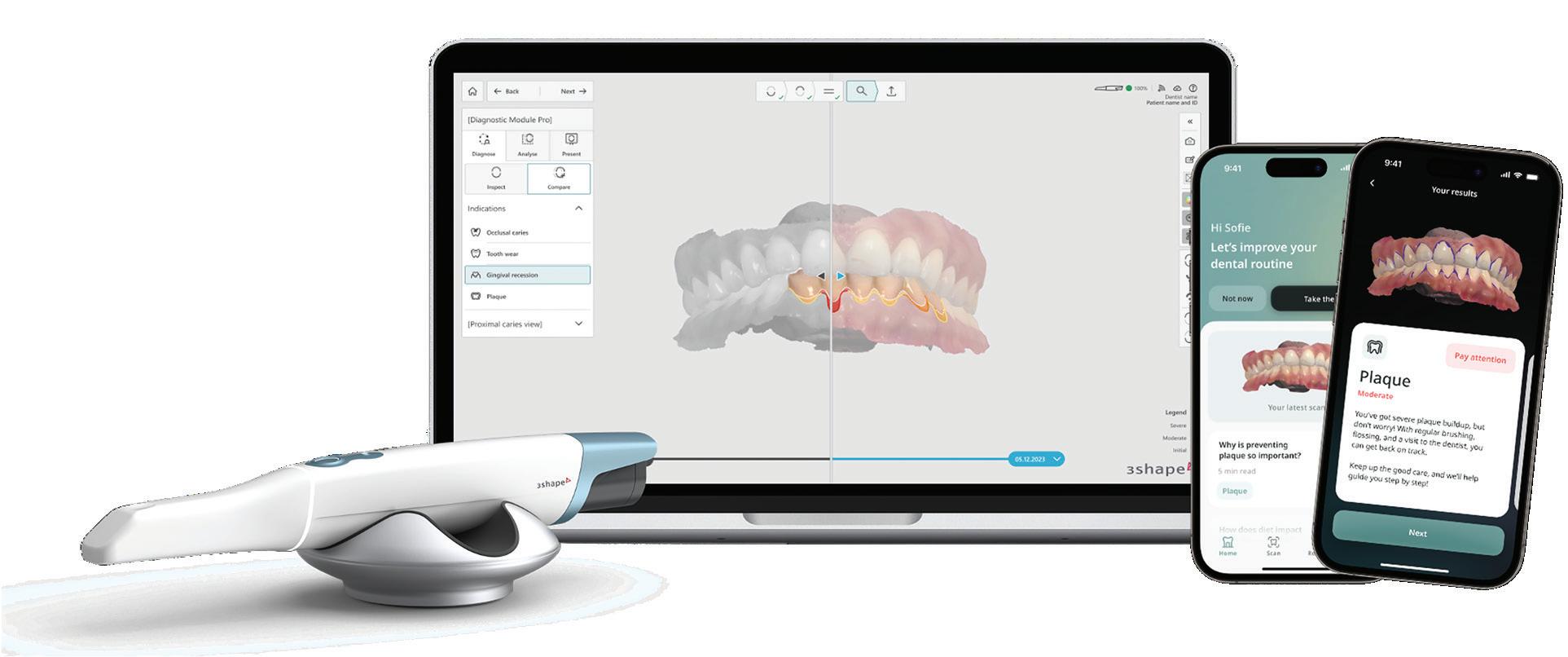 • Dx Plus compatibel – AI ondersteunde detectie en visualisatie van o.a. cariës, slijtage, plaque en recessie.