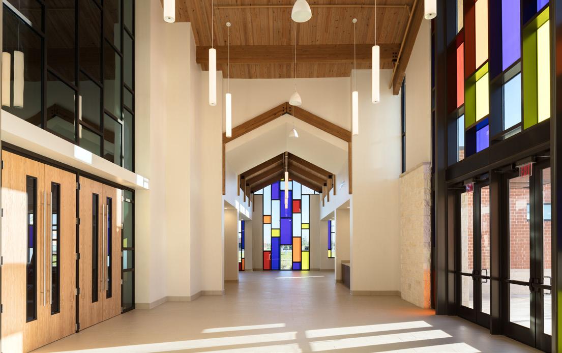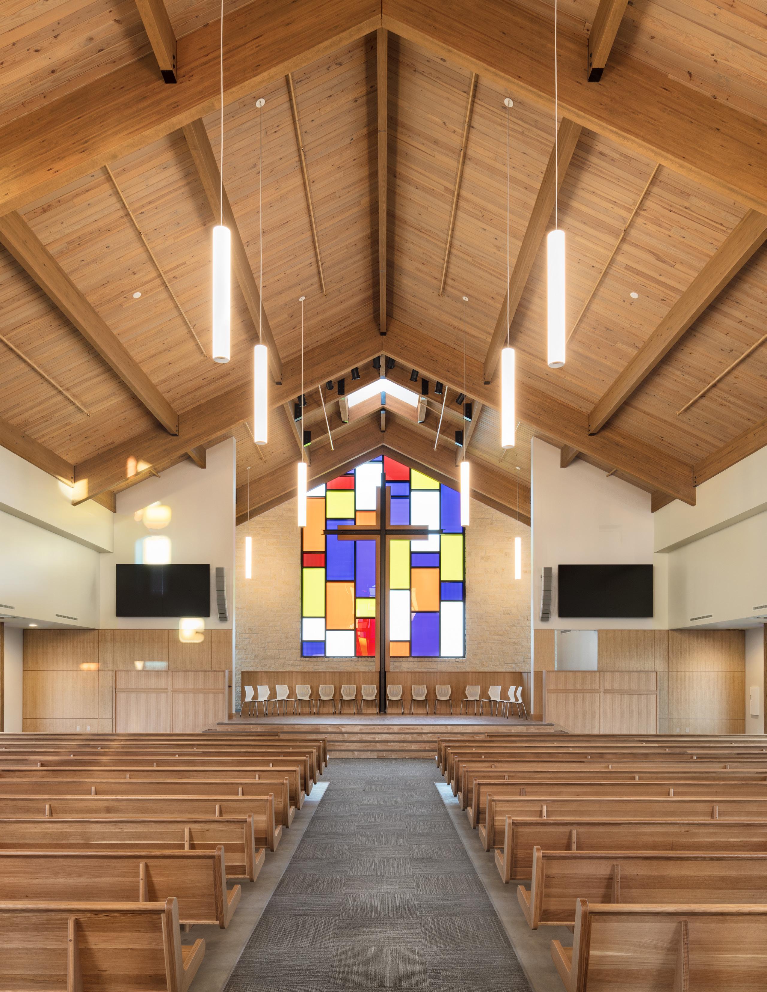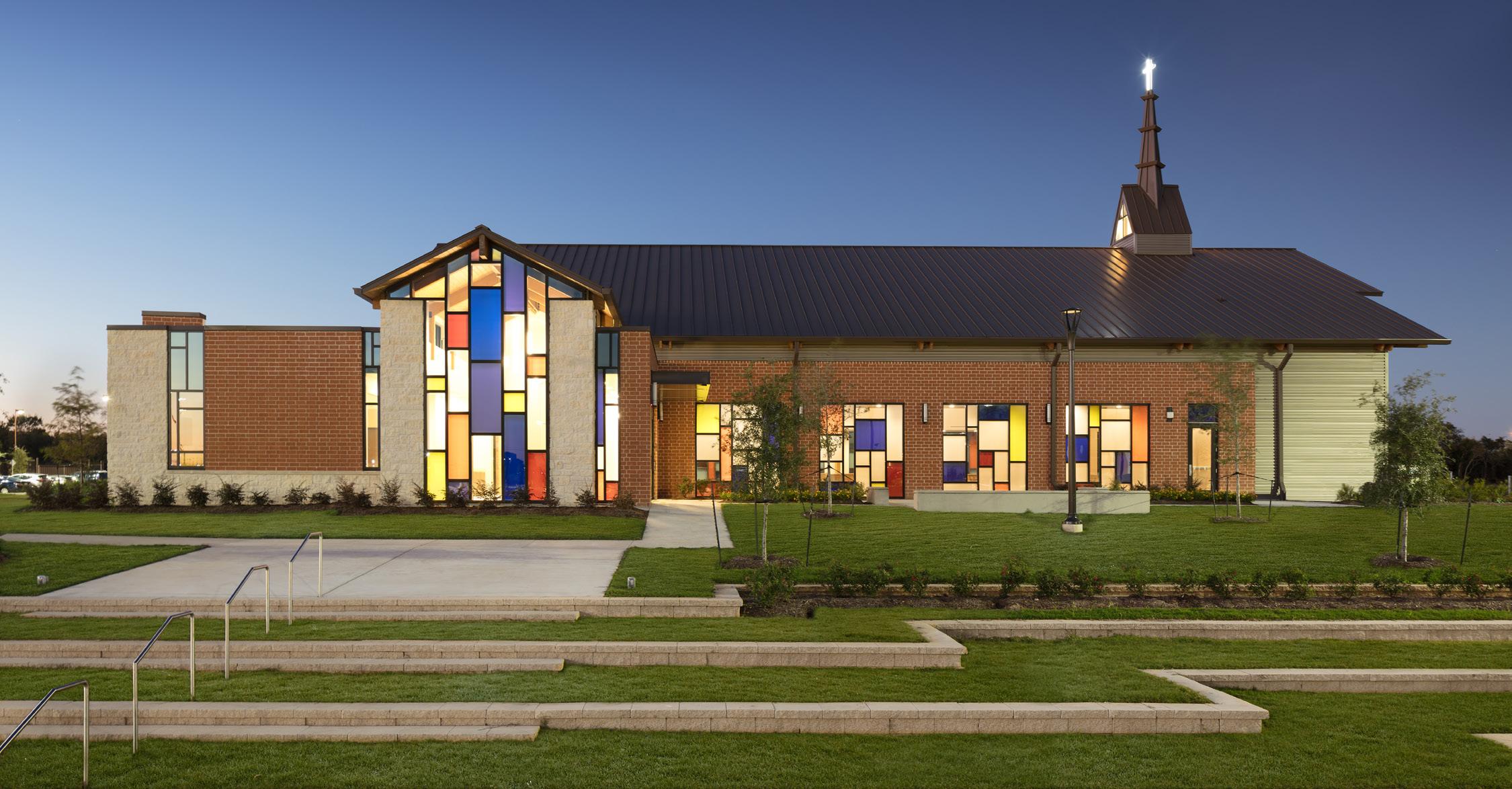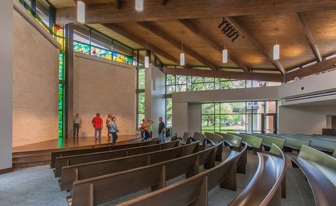 DBR worked with Merriman Holt Powell Architects on the 37,170 sf addition of Memorial Church of Christ in Houston, Texas. The new section provides a fellowship gathering space, a chapel, and classrooms for both children and adults. The light-filled 300-seat chapel overlooks the oak-lined lawn along Echo Lane. The fellowship gathering space serves as a hub with a narthex connecting the front of the campus to the main parking lot. The children’s bible study rooms and indoor play area are bright and modern. The adult classrooms are flexible, warm, and are fully integrated with the latest technology. DBR also designed a new electrical service and chiller plant for the entire campus.