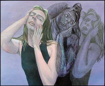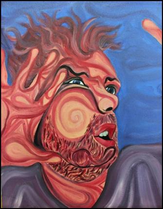 Above: “This painting looks at the idea of being physically locked in an environment, along with the emotions that come with it. The figure’s face pressed against a glass surface is brought to life with hypnotic lines and swirling brushstrokes.”