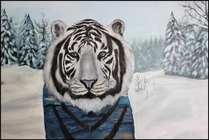 “This work is themed around the change of seasons. The natural environment of the white tiger relates to winter, with the contrast of summer seas within the image of the tiger.” - Deema Belal
