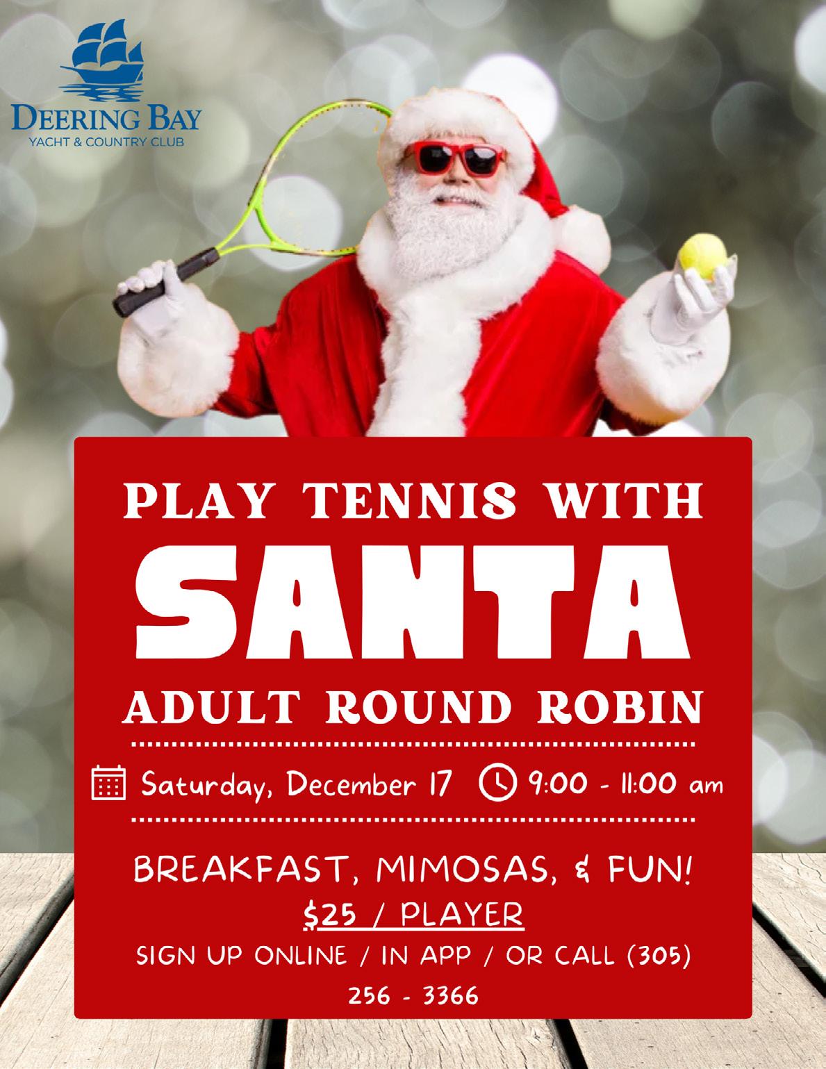 16 17 -Tennis With Santa Round Robin -MGA #2 -Prime Rib Night 18 -Brunch -Chanukah Candle Lighting & Buffet