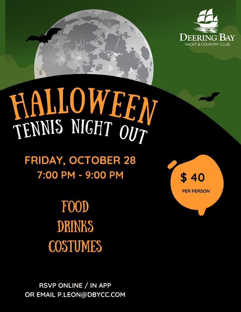 October is shaping up to be a great month, with many SFWDL and USTA matches to be played and clinics and lessons to be held. In addition to our clinics, on Friday, October 28th we will be hosting a Halloween Tennis Night Out, where our members are not only competing for the best player, but for the best costume as well. We would like to thank our members for supporting the tennis program and remind you all that the Tennis Shop hours of operation are Tuesday Through Sunday from 8:30am to 4:00pm.