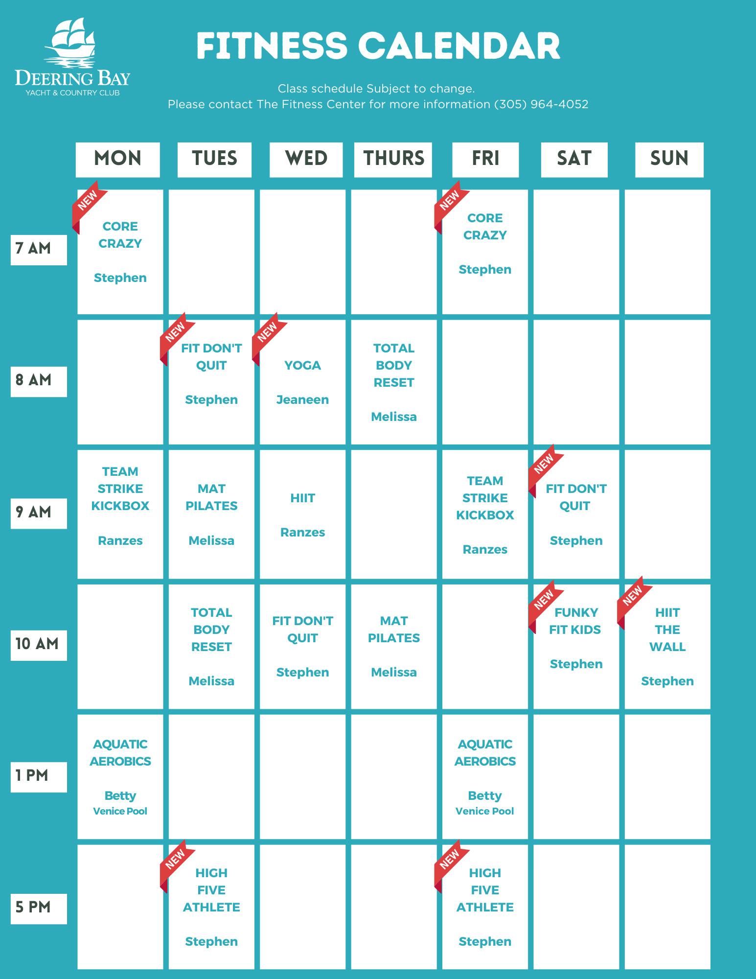 The Fitness Team is gearing up for the busy season here at Deering Bay, and we always welcome your thoughts and ideas for the Fitness Program. Over the next few weeks, you might see some new faces as we expand the Fitness Program with new classes taught by new instructors!