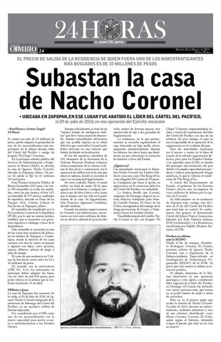 Chapo” Guzmán, emparentándose incluso a través del matrimonio del líder del Cártel del Pacífico con una de sus sobrinas. En poco tiempo, el capo ya era el responsable de la operación de la organización en el occidente del país. Para las autoridades mexicanas era el tercero o cuarto en la línea de mando de la referida organización delictiva, pero para los Estados Unidos, y en específico para el FBI, se trataba del principal narcotraficante del país debido a la amplia capacidad para producir y traficar principalmente drogas sintéticas, lo que le valieron el seudónimo de The King of Ice. A través del Departamento de Estado, el gobierno de los Estados Unidos ofrecía una recompensa de cinco millones de dólares por la captura de Coronel. Su fallecimiento en su residencia de Zapopan trajo consigo una división en el ala del Cártel del Pacífico que tenía bajo su control. Se conformaron dos grupos: el denominado Cártel del Jalisco Nueva Generación, liderado por Erik Valencia Salazar, El 85 (ya detenido), y La Resistencia, encabezada por Elpidio Mojarro Ramírez, El Pilo. Declara su sobrino ante la SEIDO Desde el fin de semana, Humberto Rodríguez Coronel, El Canelo, presunto sobrino de Ignacio Nacho Coronel, está a disposición de la Subprocuraduría Especializada en Investigación de Delincuencia Organizada (SEIDO) de la PGR. Se prevé que este martes se defina su situación jurídica. El sábado, elementos de la Marina detuvieron en una operación quirúrgica a este sujeto, considerado líder regional de Cártel del Pacífico en Durango. El Canelo fue detenido con cuatro personas más, que tenían en su poder fusiles de asalto y miles de cartuchos. Este no es el primer golpe que recibe la familia de Nacho Coronel. En julio de 2010, durante un enfrentamiento, militares abatieron a otro de sus sobrinos identificado como Mario Carrasco Coronel, El Gallo, quien según el Ejército, intentaba ocupar el puesto que dejó su tío tras su muerte.