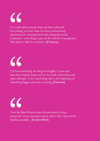 I feel the Beta Projects have the potential to keep important issues moving in times where there may not be funding available. [Councillor]