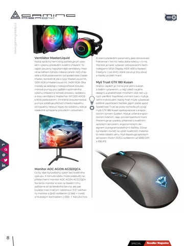 Ventilátor MasterLiquid Každý správný herní stroj potřebuje při vysokém výkonu především kvalitní chlazení. To zajistí pouze ty nejvýkonnější ventilátory. Mezi ně se během tohoto měsíce zařadí i AIO chladiče s RGB podsvícením od společnosti Cooler Master, konkrétně jde o typy MasterLiquid ML 120R RGB a MasterLiquid ML 240R RGB. Oba modely se skládají z nízkoprofilové dvoukomorové pumpy pro zajištění optimálního výkonu chlazení a tichosti provozu, radiátoru a dvou ventilátorů MasterFan MF120R ARGB s RGB podsvícením. Zmíněná dvoukomorová pumpa odděluje příchozí chladicí kapalinu od kapaliny nesoucí teplo do radiátoru, kde je následně ochlazena proudícím vzduchem.