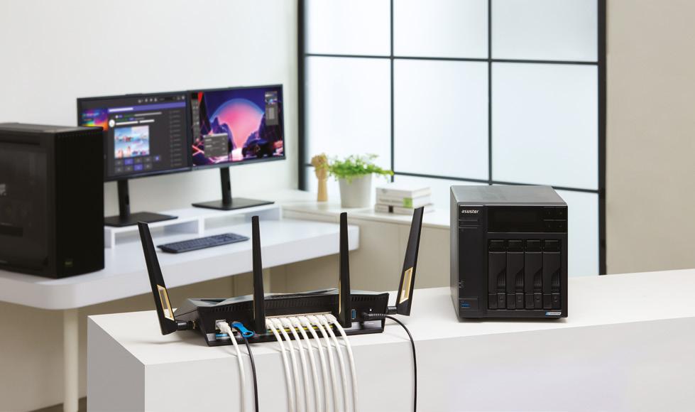 Záleží na potřebách. Některé firmy používají GTAXE16000 pro velké prostory, jiné ExpertWiFi EBM68, kde je důraz na správu VLAN a hostovských portálů. Pro menší kanceláře se hodí ExpertWiFi EBR63, ale i GT-BE19000 nebo ZenWiFi BQ16 s funkcí Smart Home Master. Oblíbený je také RT-BE88U se dvěma 10Gb porty (jeden SFP+), čtyřmi 2,5Gb a čtyřmi gigabitovými porty.