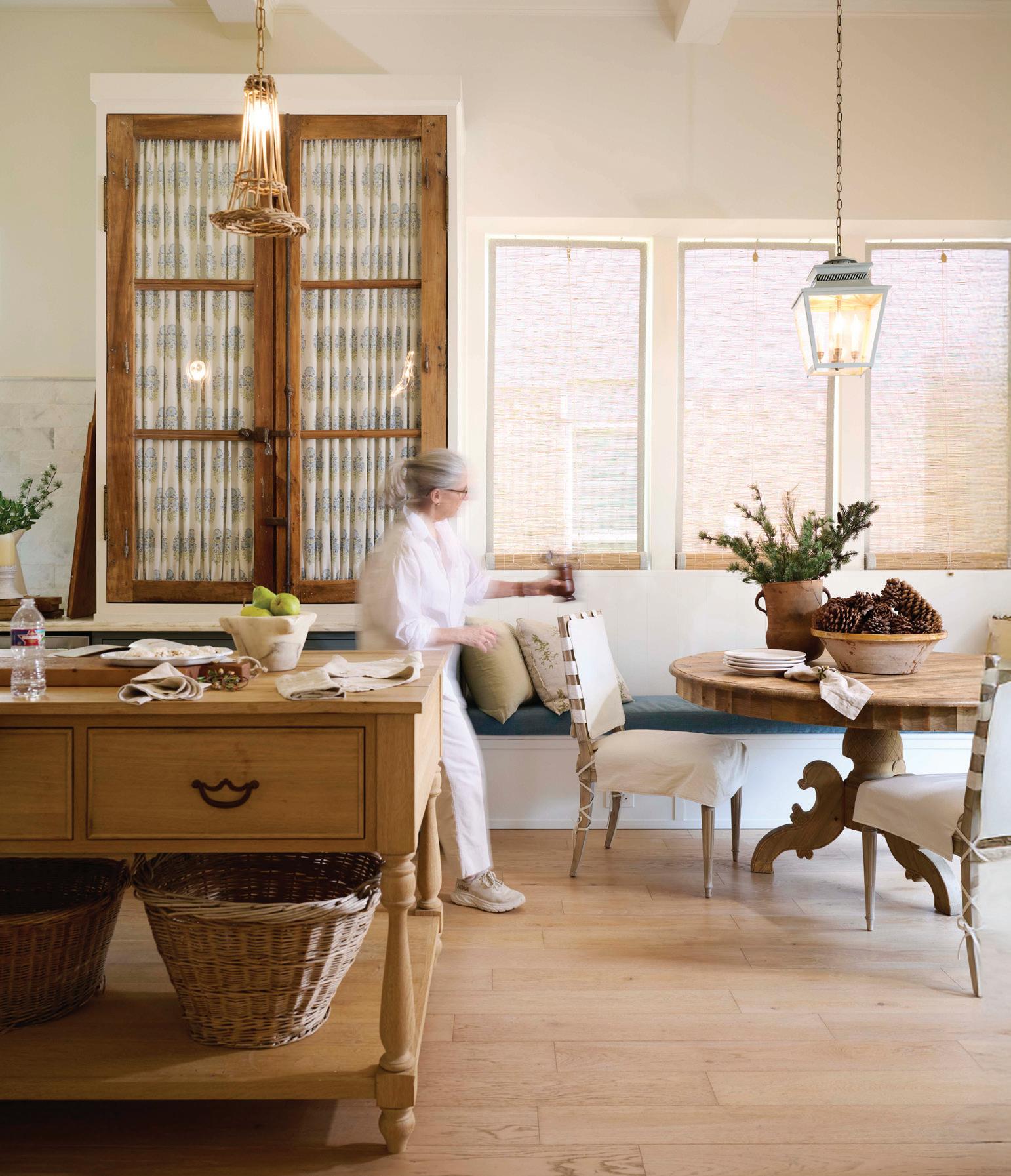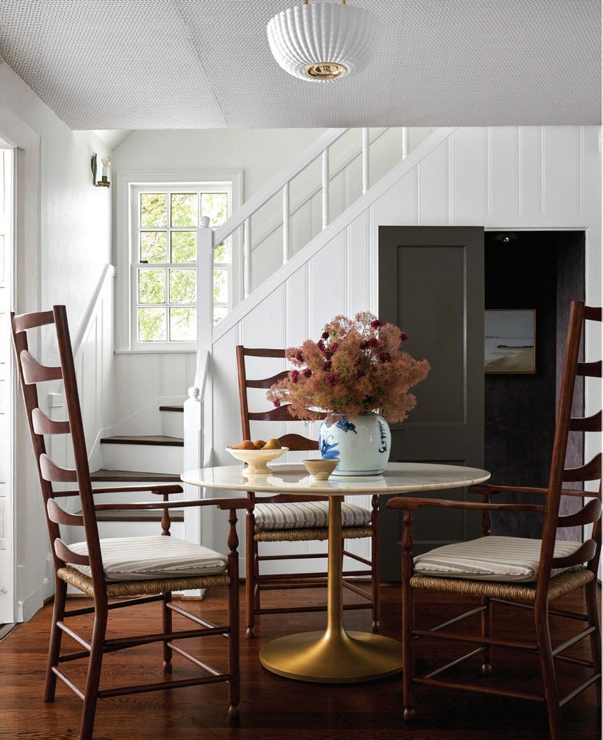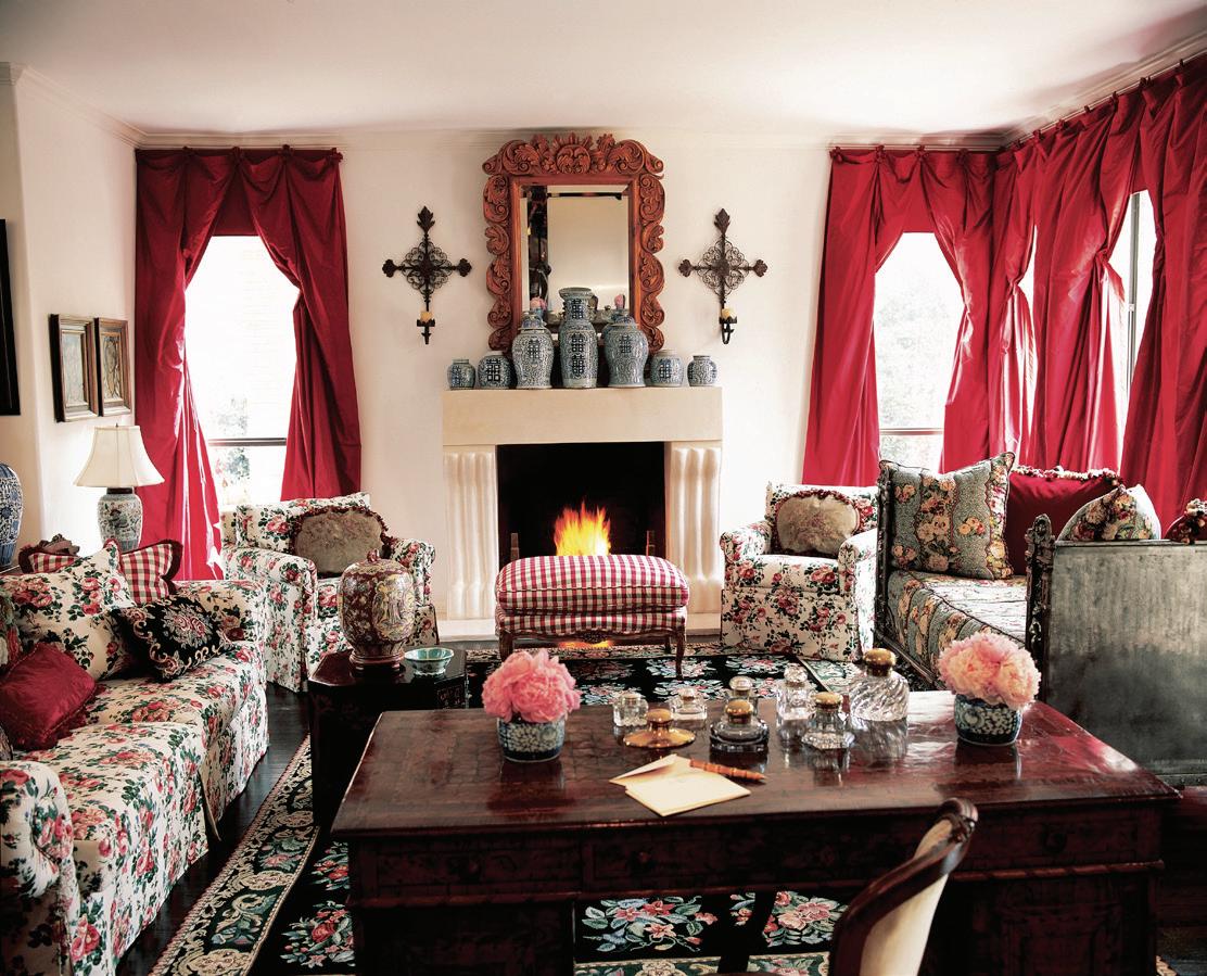 Like the time she convinced me to head to the design mecca of High Point, North Carolina, for the annual furniture market. One night, after a long day of visiting showrooms, we hopped in our rented Camaro, blasted down the highway, and hunted for the best barbecue in town. As we walked into our restaurant of choice, we realized it was empty. Unbeknownst to us, everyone else was taking cover from a tornado that was projected to touch down in minutes. Not us. Two girls from the Texas/Oklahoma panhandle don’t scare that easy. We drove back to our hotel amidst the eerie skies. Another time, she planned a jaunt to Fort Worth. Sonic iced teas in hand, we rolled up to antiques legend Joe Minton’s curated cottage. Minton charmed us with stories for every piece in his home. He even shared his top-secret party trick: Boston Market pot pies. As for the cover that resulted? It’s timeless and cozy, the kind of image that makes you want to step straight into it and curl up by the re. But every time I see that cover, I don’t just think of design—I think of the ride, the laughter, and the adventure. Those road trips and scouting missions are my favorite memories from my time at D Home.” —Ryan Conner, former executive editor