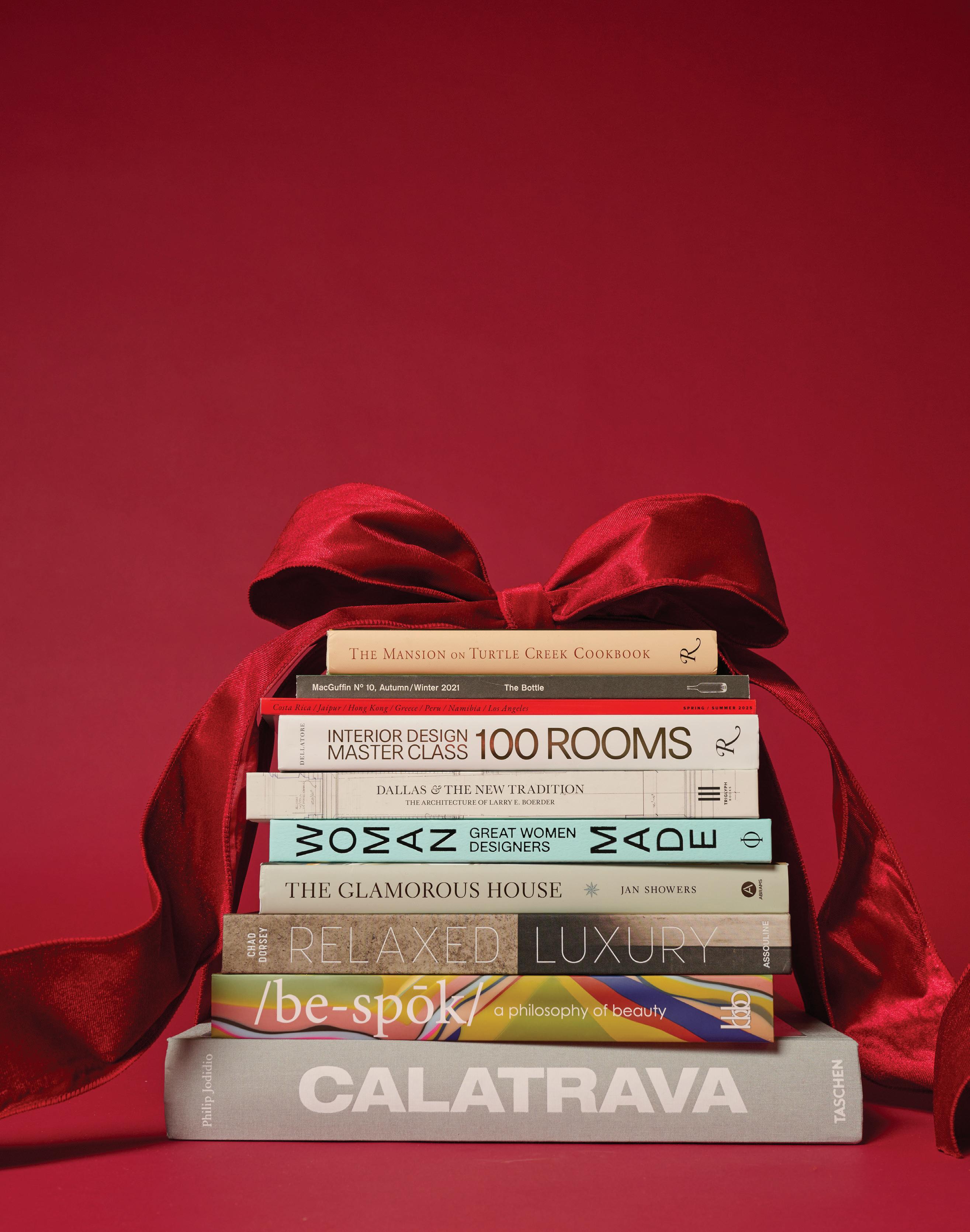 For inarguable proof that Dallas is a top-shelf city, simply pick up one of the many tomes by, or featuring, local talent. There are new coffee-table books by architect LARRY BOERDER and designers CHAD DORSEY and JAN SHOWERS. Designers JEAN LIU and SHELBY WAGNER are featured in Interior Design Master Class: 100 Rooms, as is Studio Thomas James’ PHILIP THOMAS VANDERFORD in Bespoke: A Philosophy of Beauty. Even local institutions, like the Margaret Hunt Hill Bridge, are commemorated in Calatrava, which details the works of the titular architect’s storied career. And you can never go wrong with the Rosewood Mansion on Turtle Creek, whose restaurant’s beloved recipes are compiled in one beautiful package.