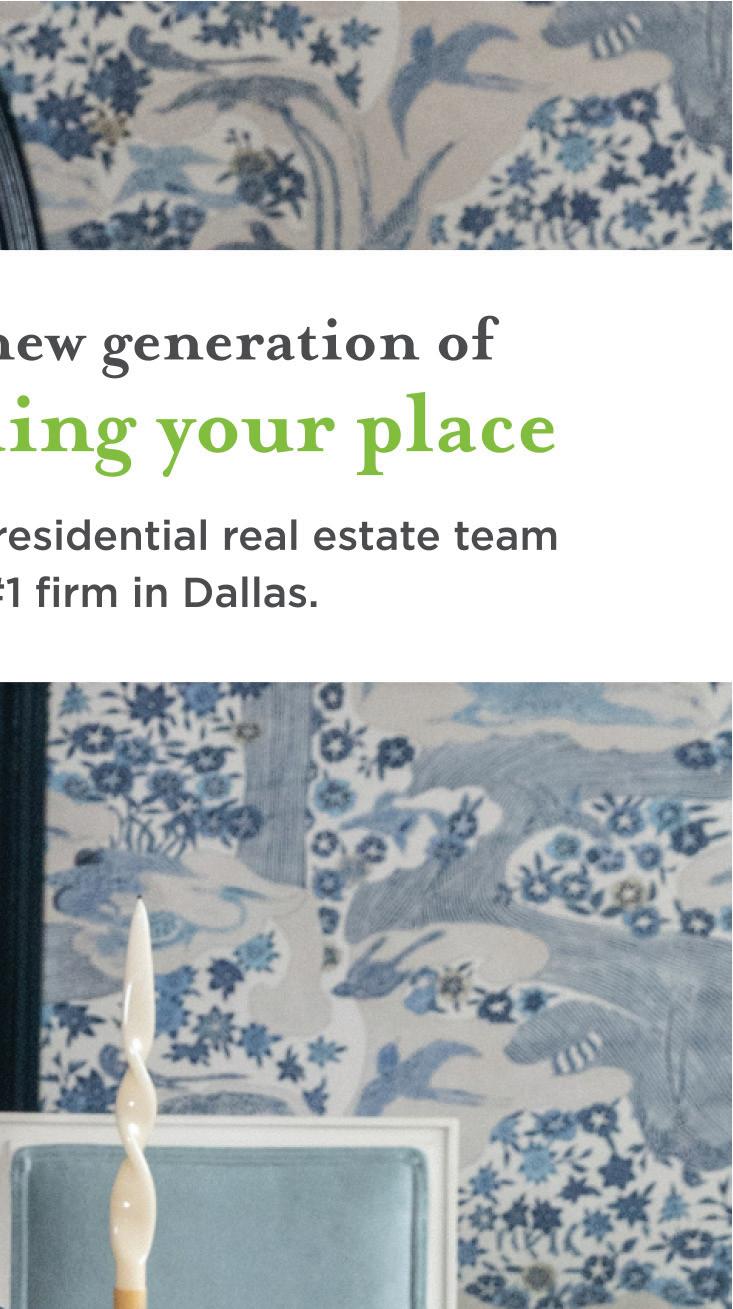 of beauty—architects, designers, builders, furniture makers, landscape designers, lighting experts, craftspeople—you are the artists who shape the worlds we live in. Thank you for our partnership; we all share a commitment to excellence, and you make our work possible. This issue is both an homage to the past and a celebration of the present: the holidays! Enjoy the “25 Years of Dallas Design” feature (pg. 47), which takes a look back through the archives and solicits perspectives from across the Dallas design industry about where we are—and where we’re headed. You’ll also find the 2025 Best of Big D Home list (pg. 72), which is packed with local resources and shops. This year, our editors are honoring both new favorites and past gems that they still stand by. And don’t miss the incredible interior features—again, a tribute to generous homeowners who let us into their worlds and to the craftspeople who design them. There’s so much more in this issue, as there always is. Sit back and enjoy. Beauty awaits.