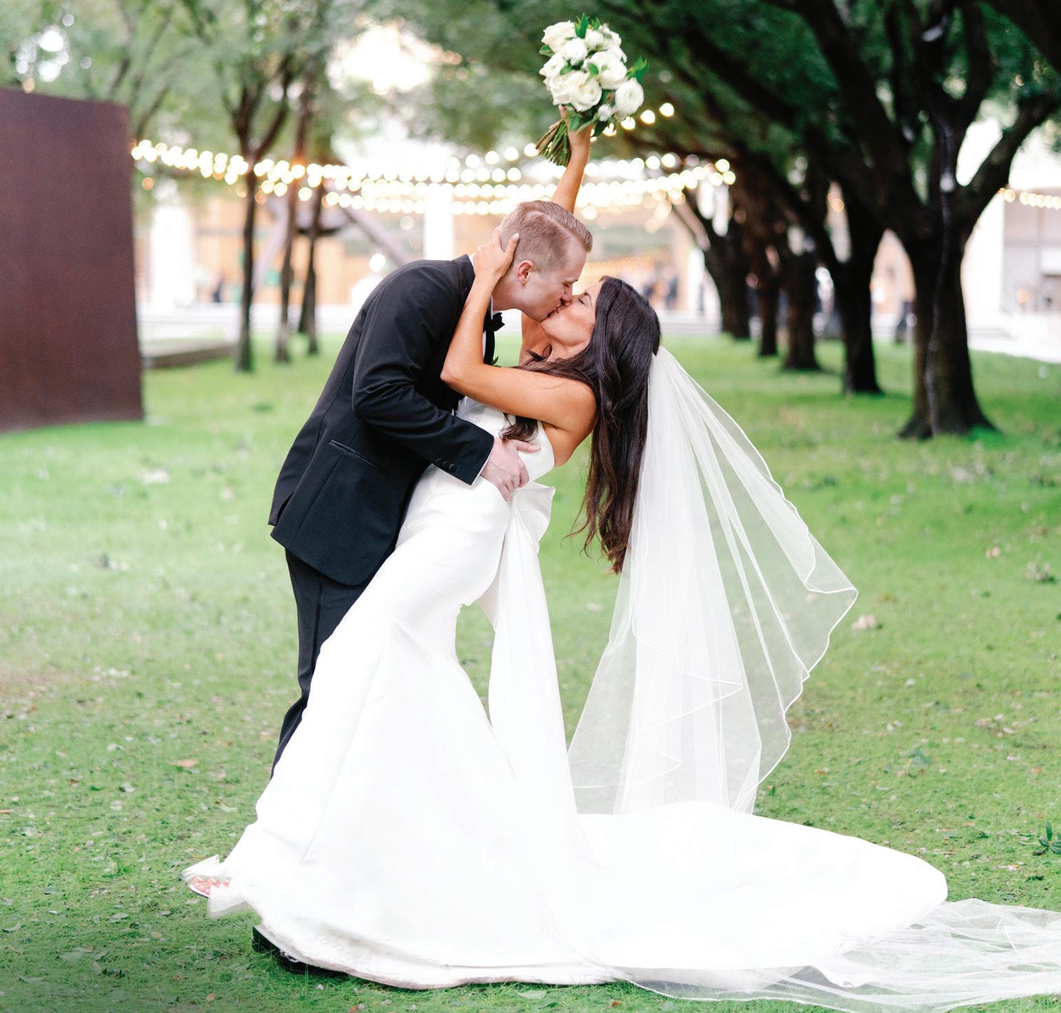 resources that will help you care for your physical and mental well-being throughout the wedding-planning process (pgs. 42–43). Looking for a way to incorportate some Texas flavor into your festivities? We explore the recent surge in country-western style in weddings on pages 49–54. And while destination weddings continue to be a favorite way for couples to celebrate, here’s a news flash if you’re considering one: You still need Dallas-based vendors to make your dreams a reality. We’ll help you see how (pgs. 88–89).