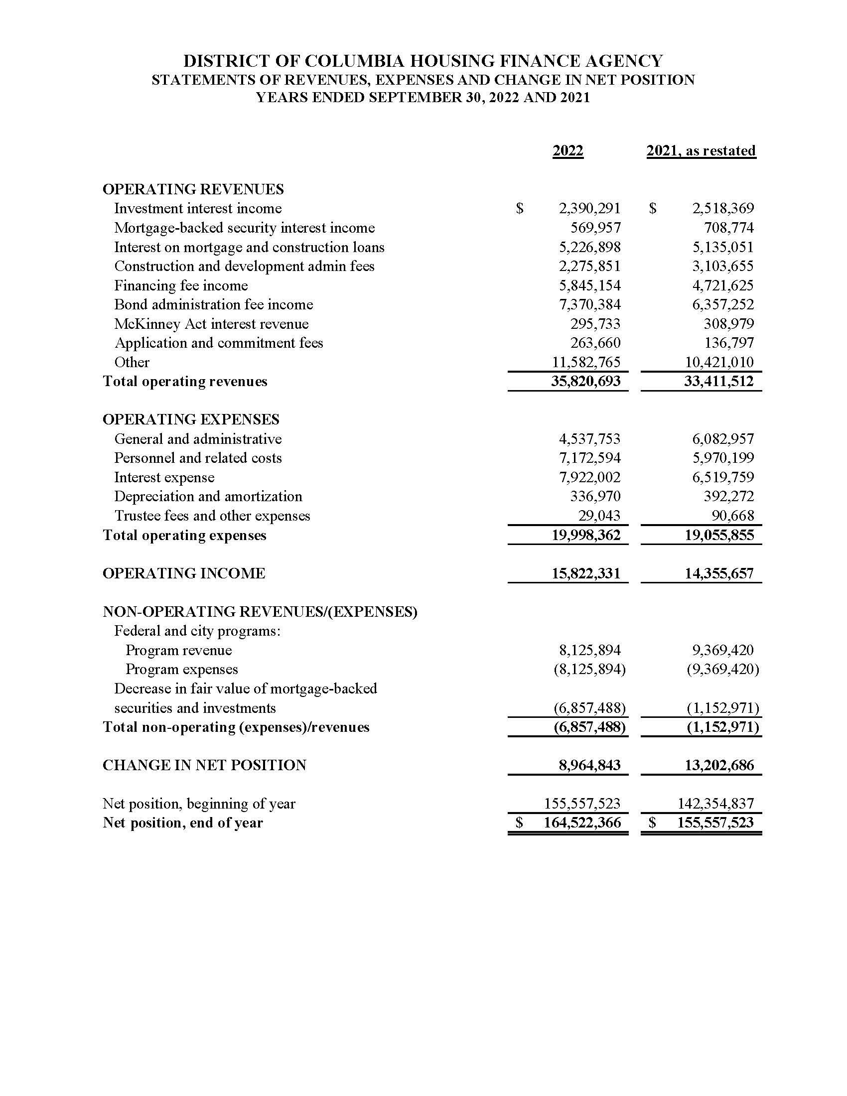 During my seven years as a member of the Board, I have witnessed the Agency launch and expand programs to address the housing needs of District residents, and FY 2022 has been no exception. Throughout market fluctuations, DCHFA’s pipeline, portfolio and staff have remained steadfast and resilient.