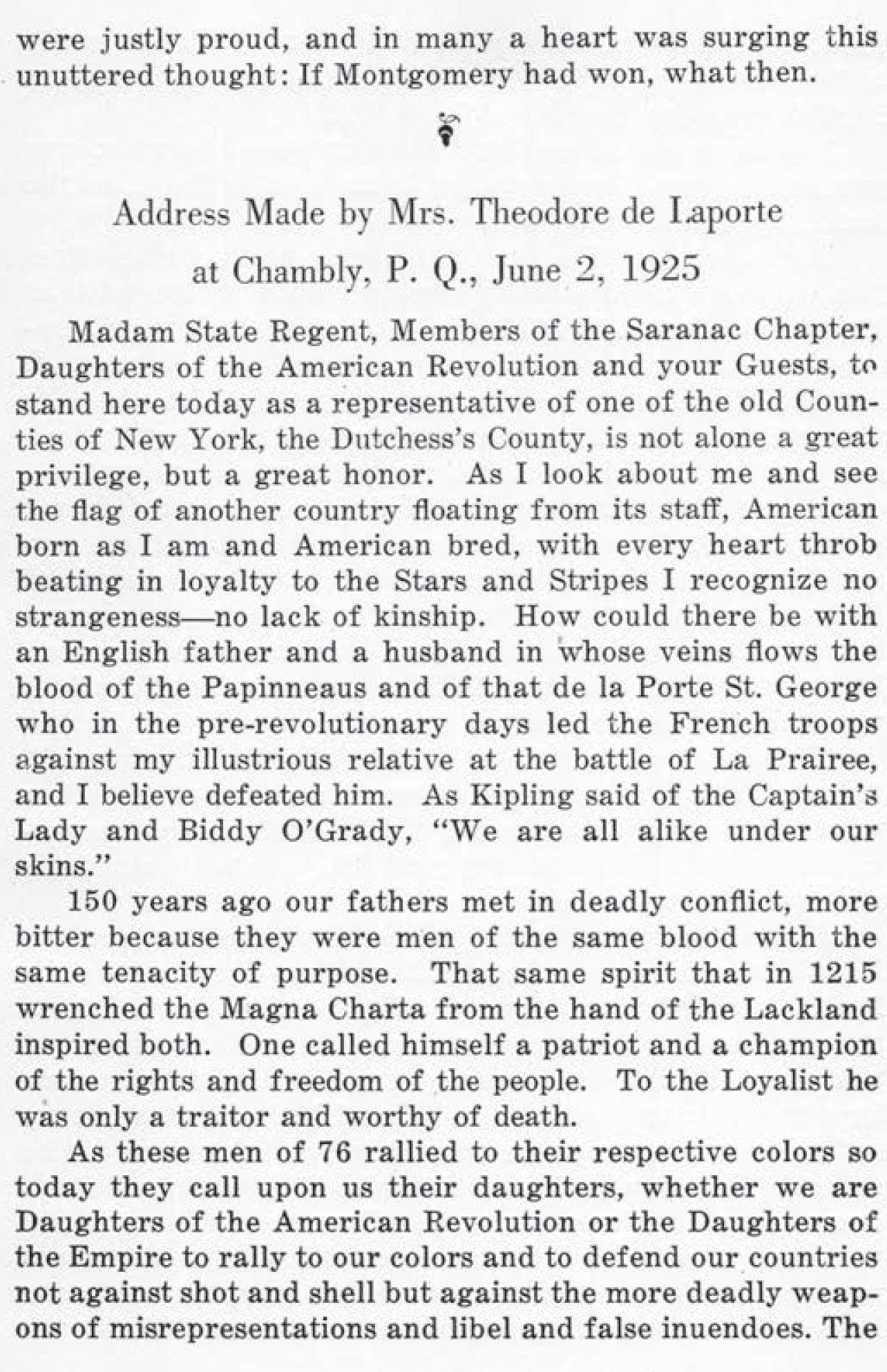 Dedication of Monument, Chambly, P.Q. (Province of Quebec) 29 by Mrs. Theodore de Laporte