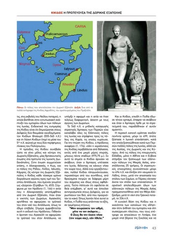 Πάνω: Οι πόλεις που αποτελούσαν την Δωρική Εξάπολη. Δεξιά: Ένα από τα πολλά αντίγραφα της Κνιδίας Αφροδίτης, του αριστουργήματος του Πραξιτέλη.
