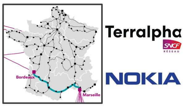 Terralpha et Nokia annoncent avoir établi un nouveau record de débit en France en activant une longueur dʼonde de 800 Gb/s sur plus de 800 km entre Bordeaux et Marseille.