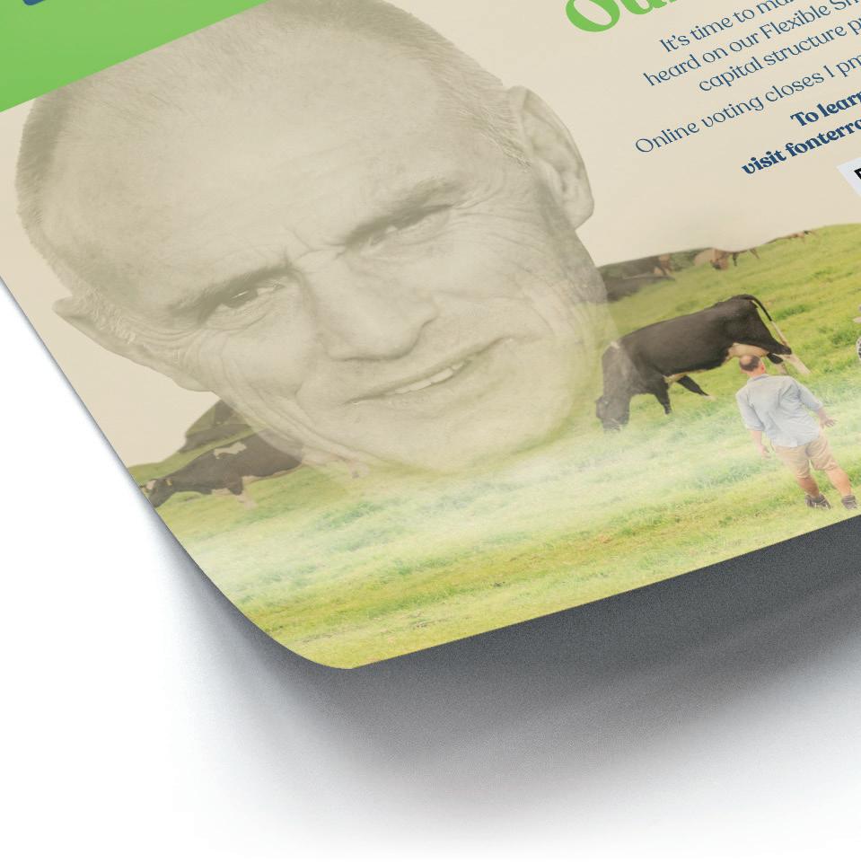 We supported the initial flyer with a series of posters, flyers, web pages on Fonterra.com and simple video content to further help to explain the capital structure.
