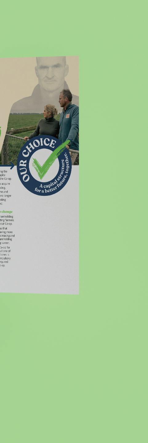 We developed the campaign name and positioning alongside a series of activations starting with an A5 flyer that was sent to every farmer. This leaflet unpacked the capital structure and the benefits of acting. With the importance of voting and the seriousness of the decision to be made we felt existing farmer photography didn’t hit the mark. We therefore commissioned a series of shoots to capture a more stoic set of Fonterra farmer shots. These were then used across all comms.