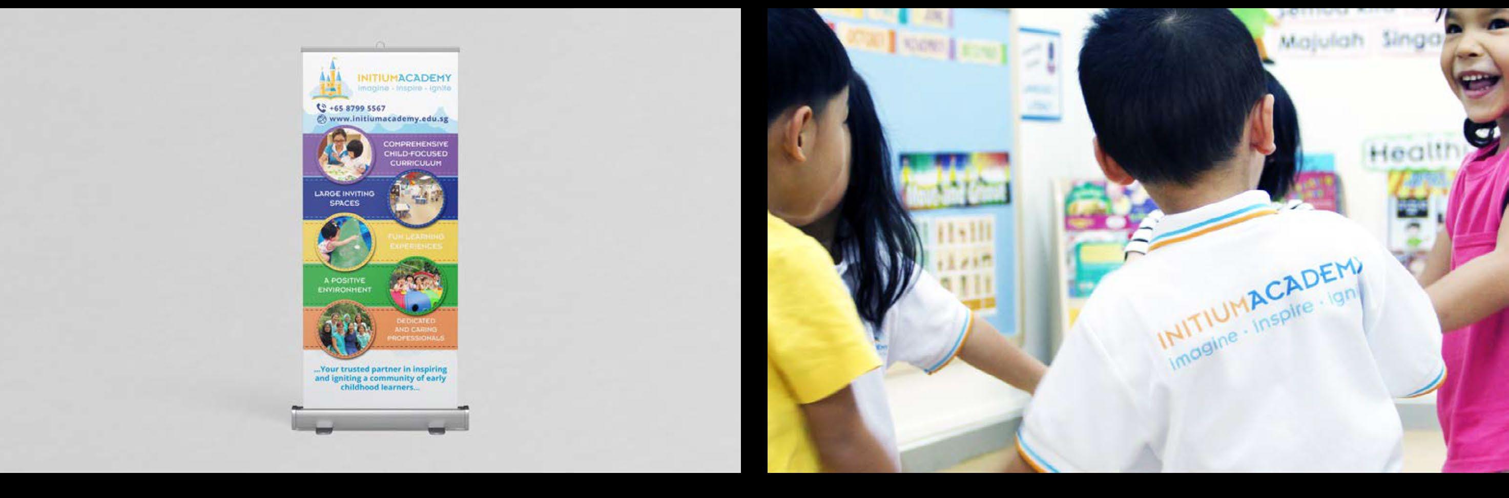 From the colours, icons and mascots we created, we further developed the corporate stationary, brochure, flyers, sticker decals, wall decals, uniforms, standees and managed Initium’s website development and creation.