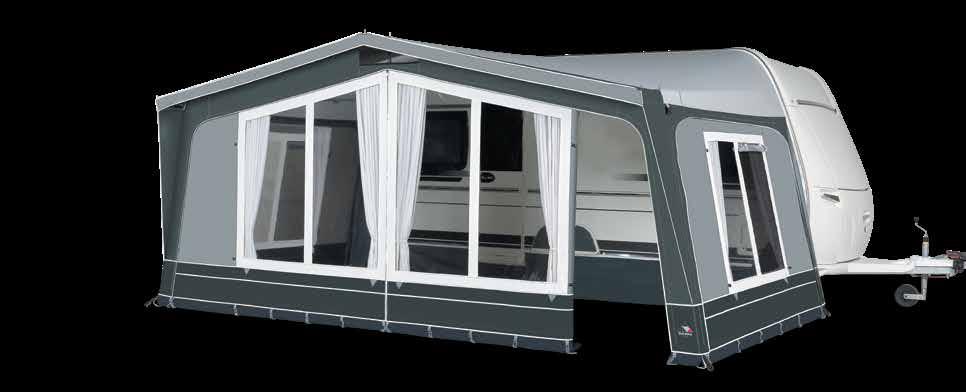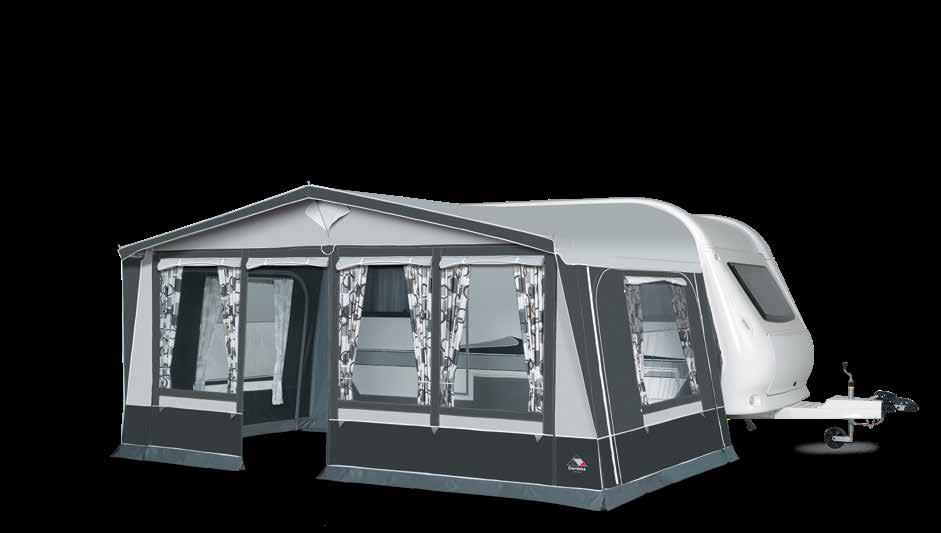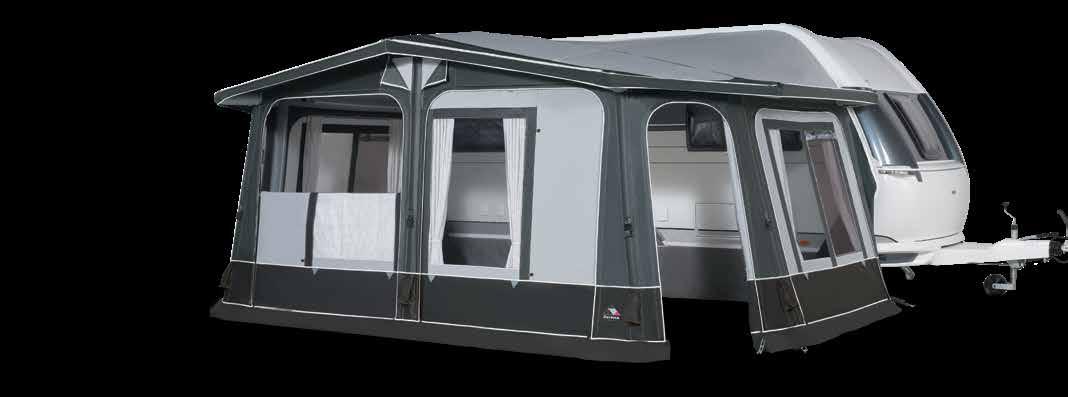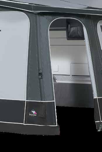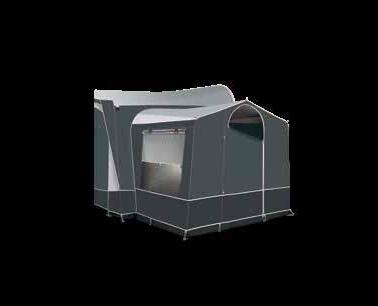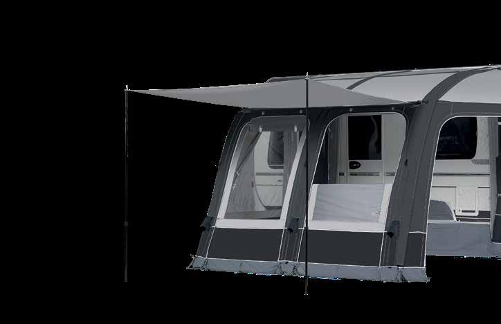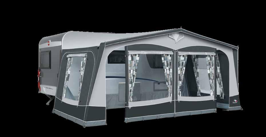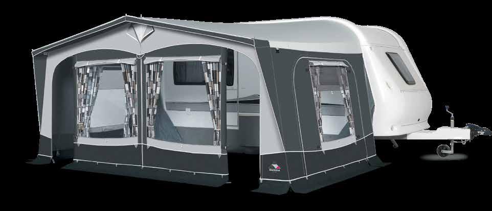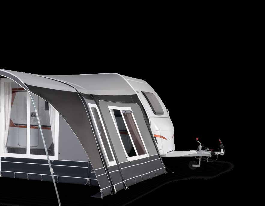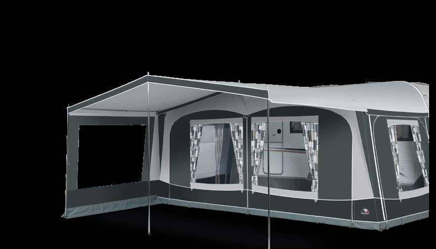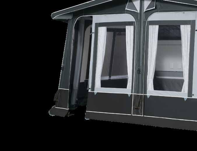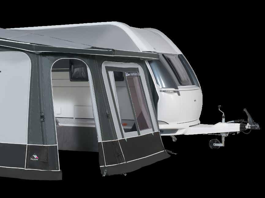 Alle Dorémas telte er udstyret med et multifunktionelt, trekantet tilslutningsstykke, som gør teltet ideelt til aerodynamiske campingvogne.