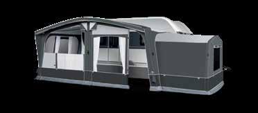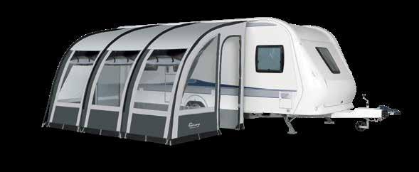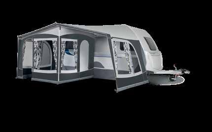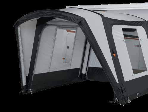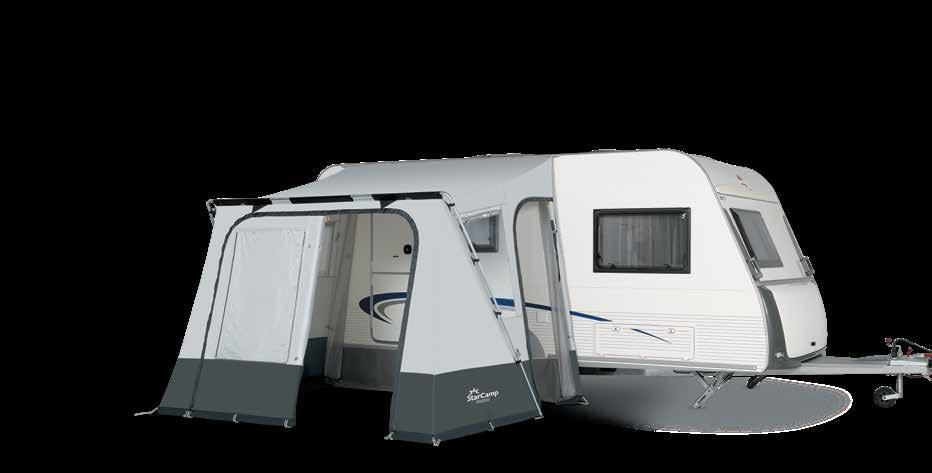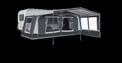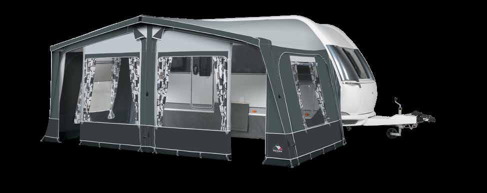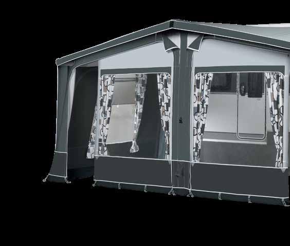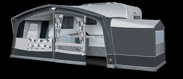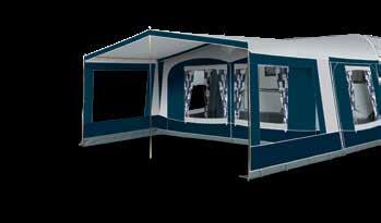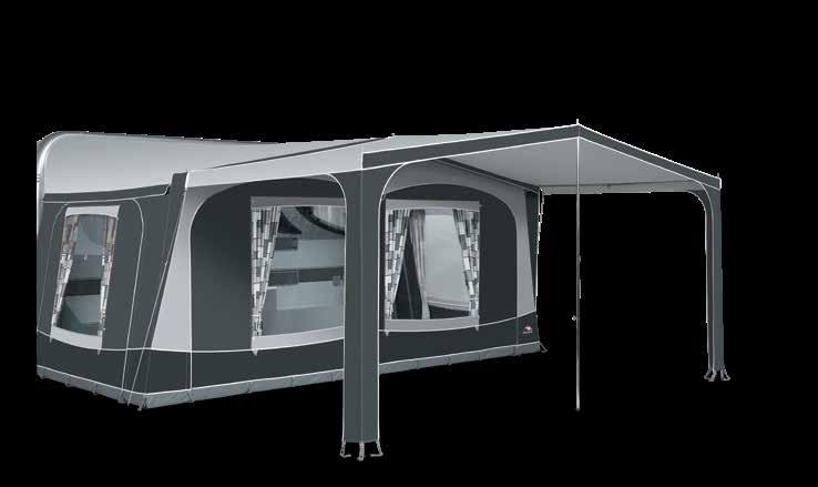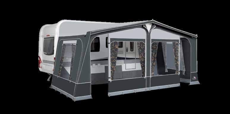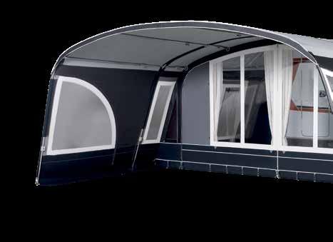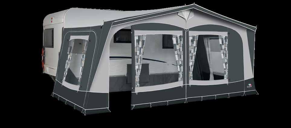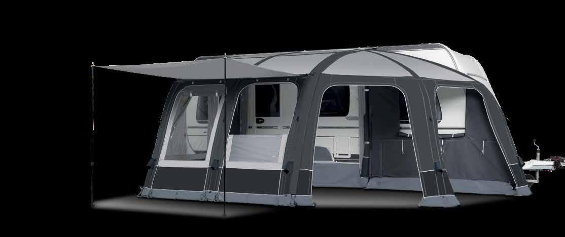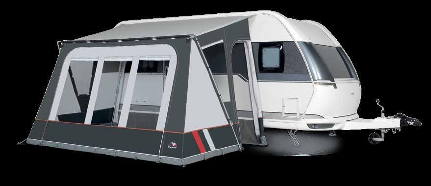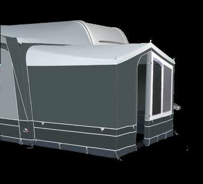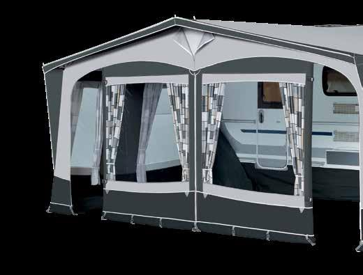 Alle Dorémas telte er udstyret med et multifunktionelt, trekantet tilslutningsstykke, som gør teltet ideelt til aerodynamiske campingvogne.