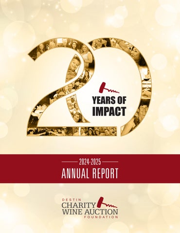 On behalf of the founders of the Destin Charity Wine Auction Foundation, welcome to the 20th annual live auction. I want to recognize and applaud the 2005 founding board members for their vision, commitment, passion, organizational skills, and—above all— their generosity. When asked to join this cause, not one questioned, “How much will it cost?” or “How much of my time will it take?” The result? Over the past 19 years, we have raised an incredible $35 million to support children in need and save lives.
