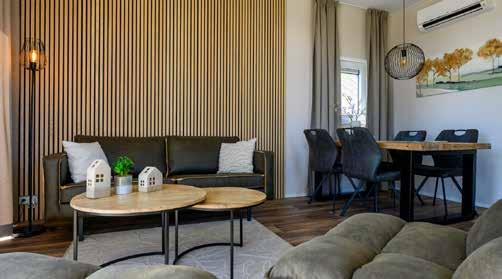 Jedes Modell verfügt über ein geräumiges Wohnzimmer mit gemütlicher Sitzecke, eine komfortable Küche, zwei Schlafzimmer, sowie ein modernes Bad.