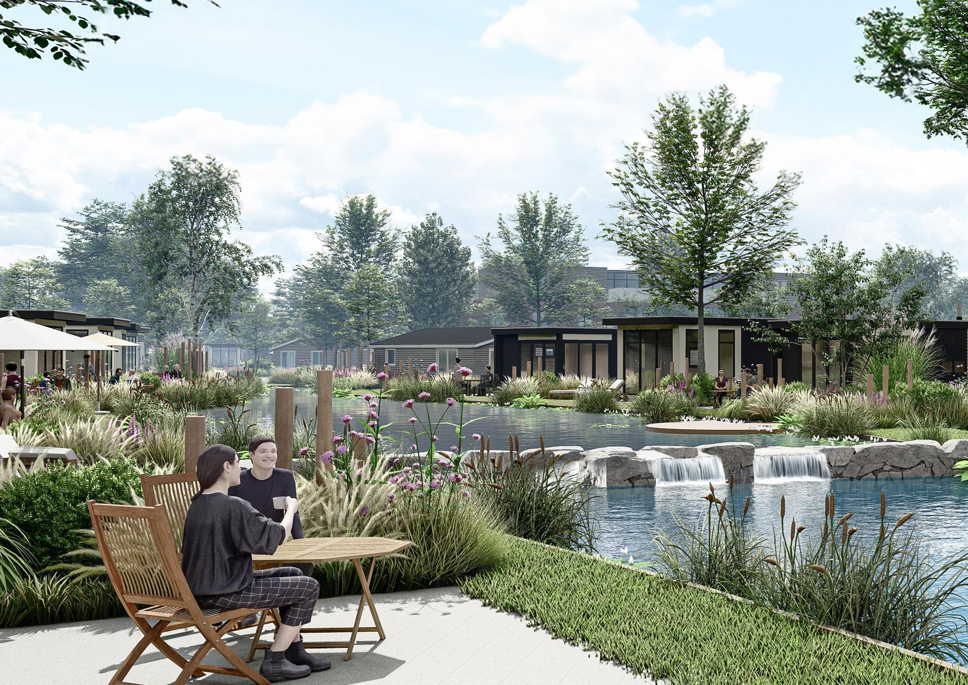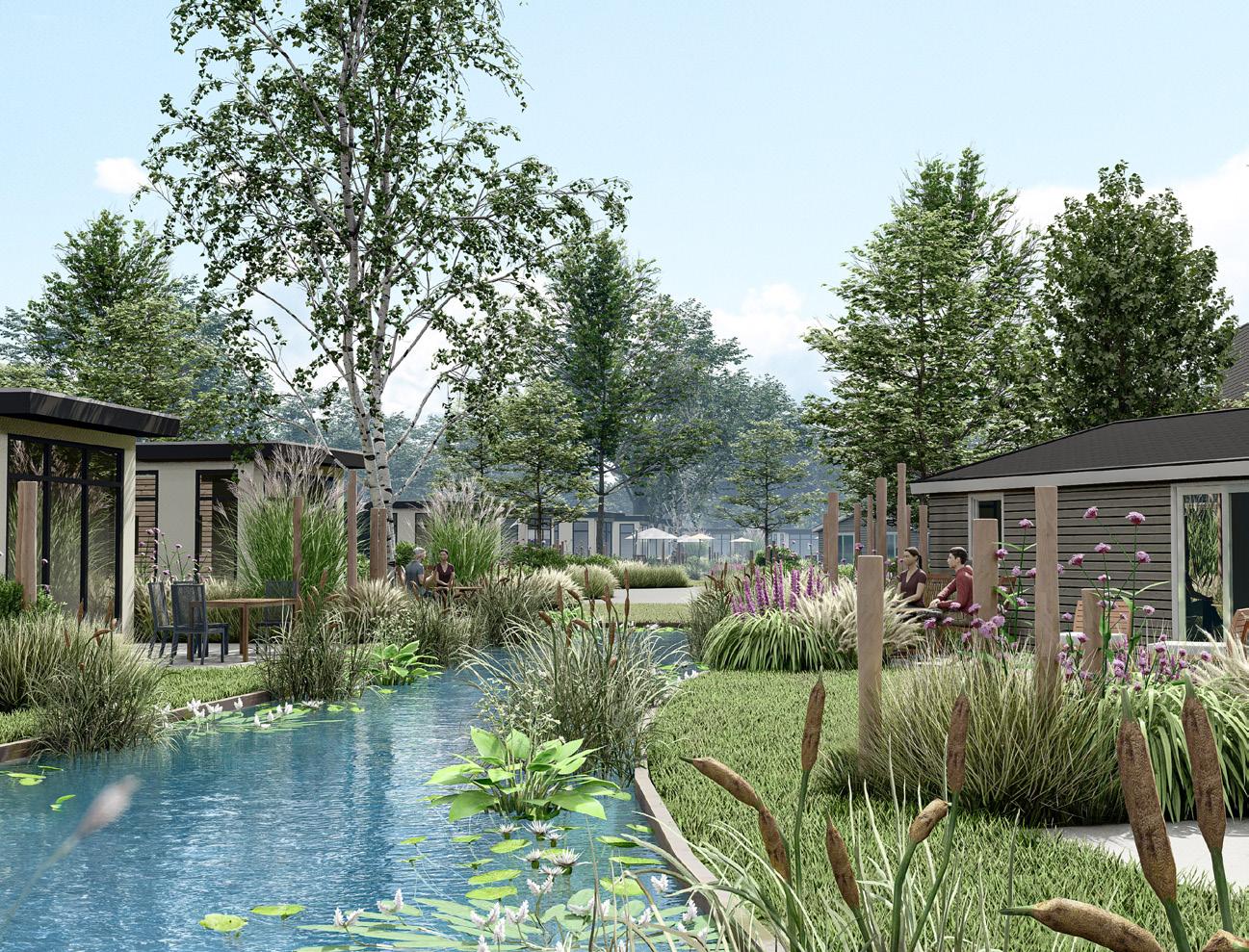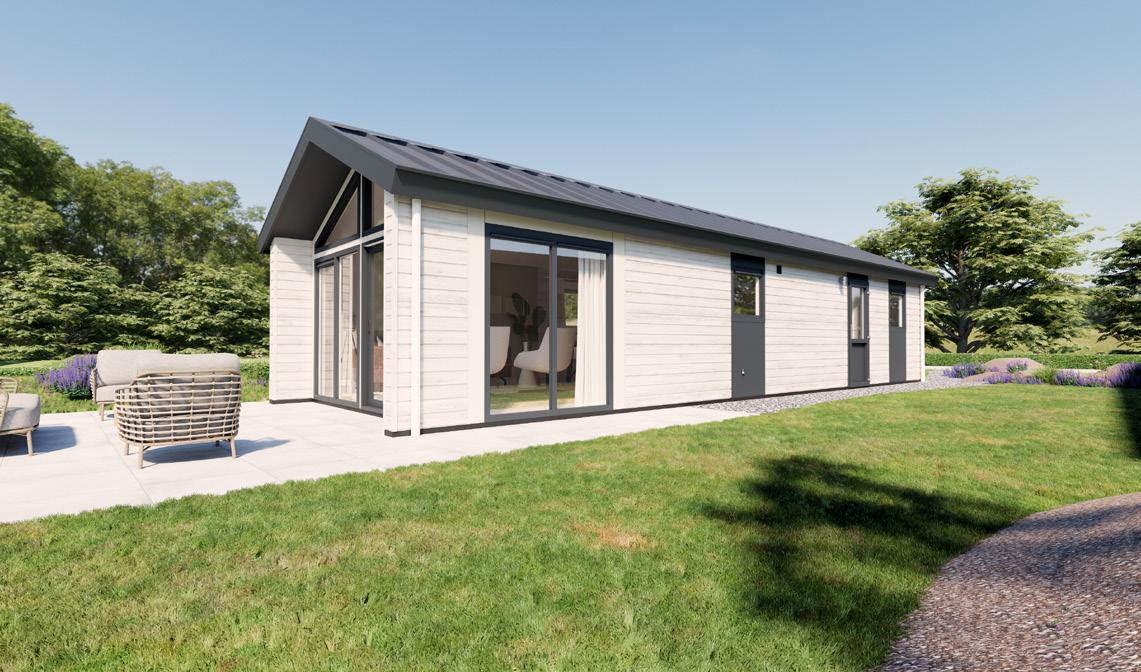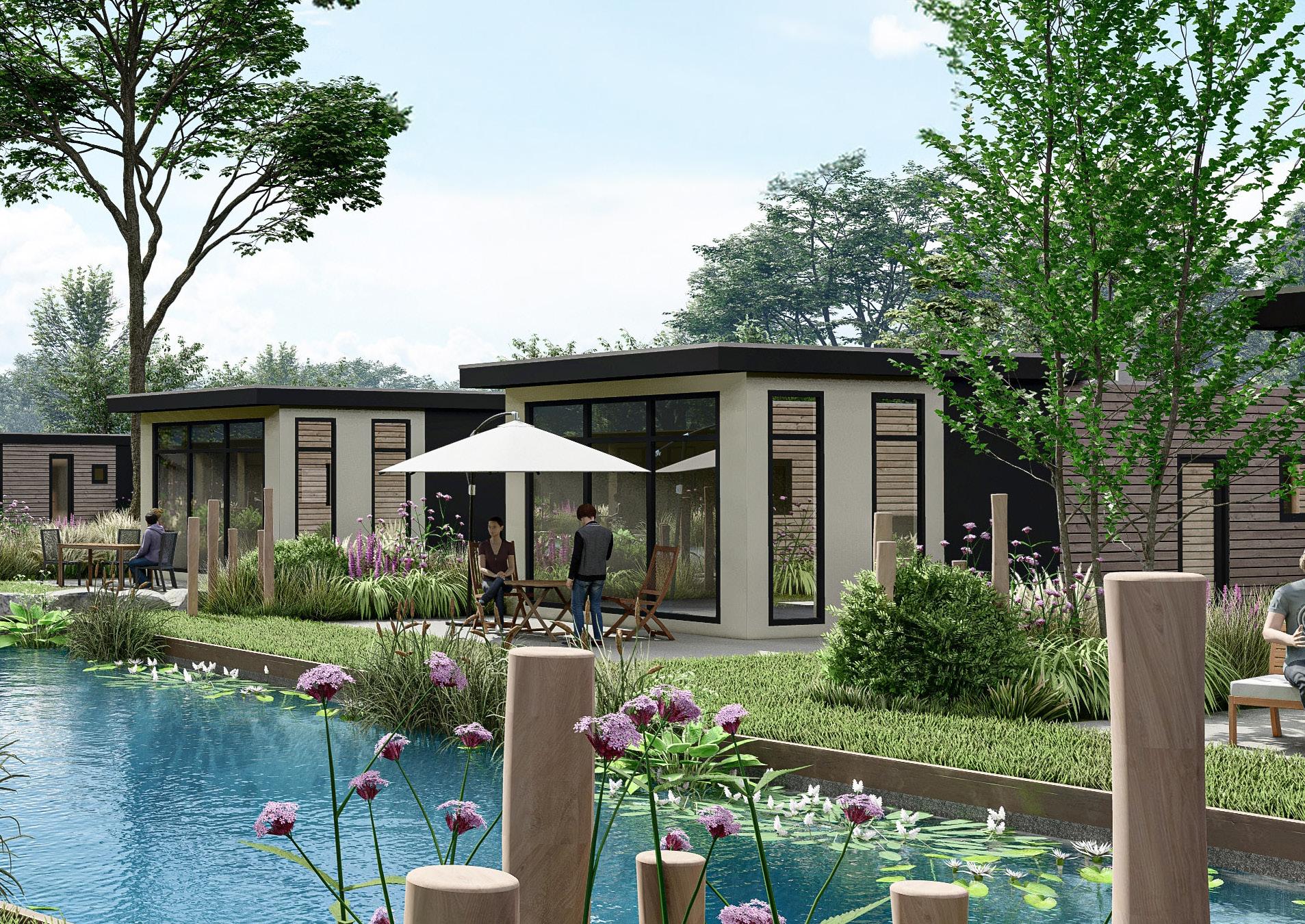 Form und Farben der Ferienhäuser wurden sorgfältig ausgewählt. Diese fügen sich harmonisch in die Naturlandschaft ein. Dank der großen Fenster und Glastüren gehen Innen- und Außenraum nahtlos ineinander über. Die Gestaltung und Platzierung der Häuser auf den großzügigen Grundstücken sorgt dafür, dass sich jedes Ferienhaus wunderbar in die Umgebung integriert.