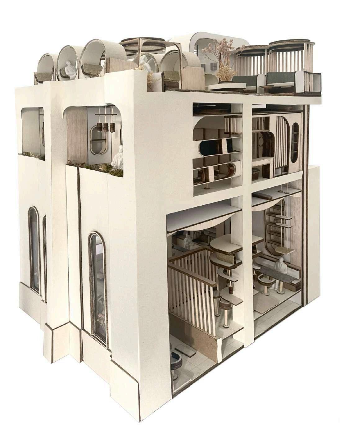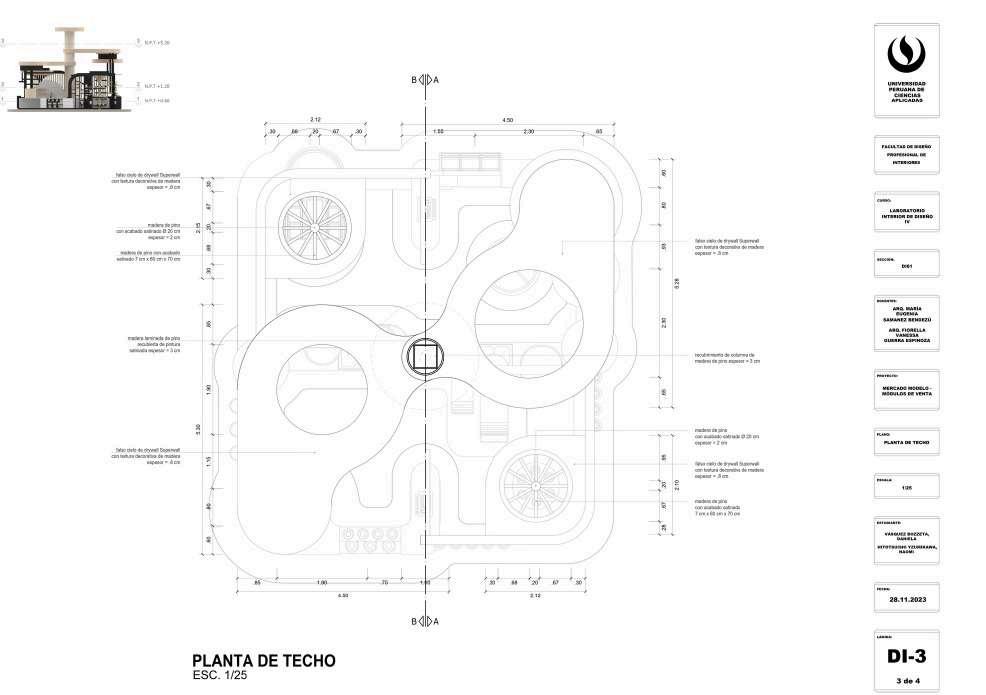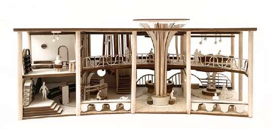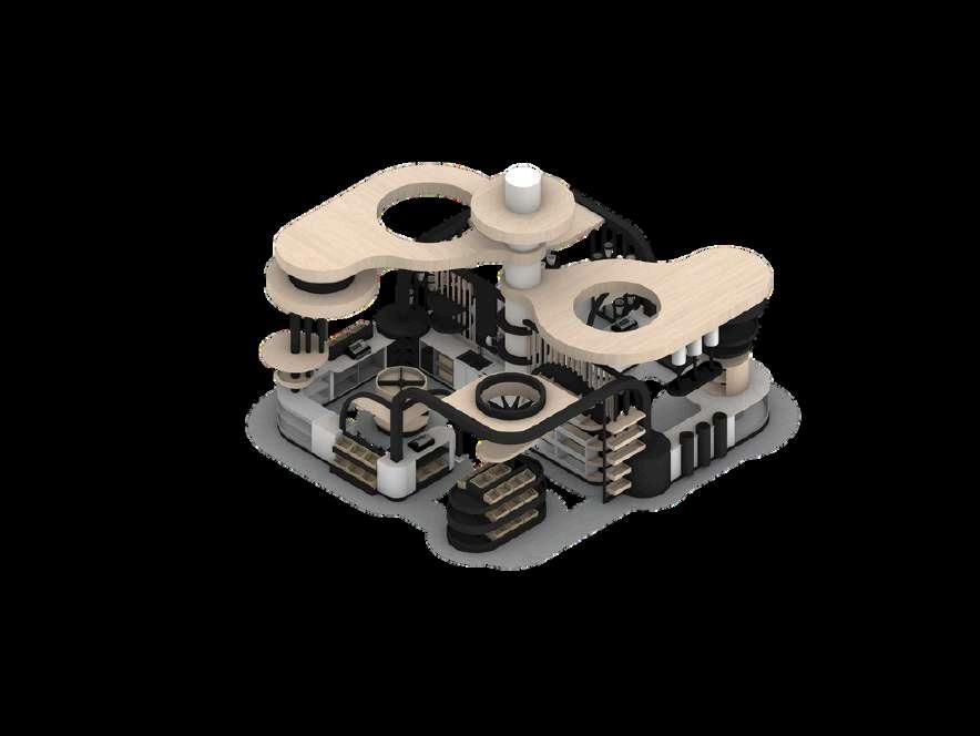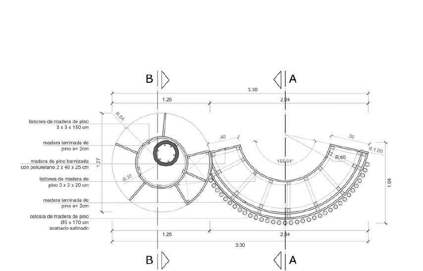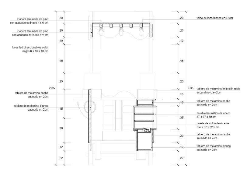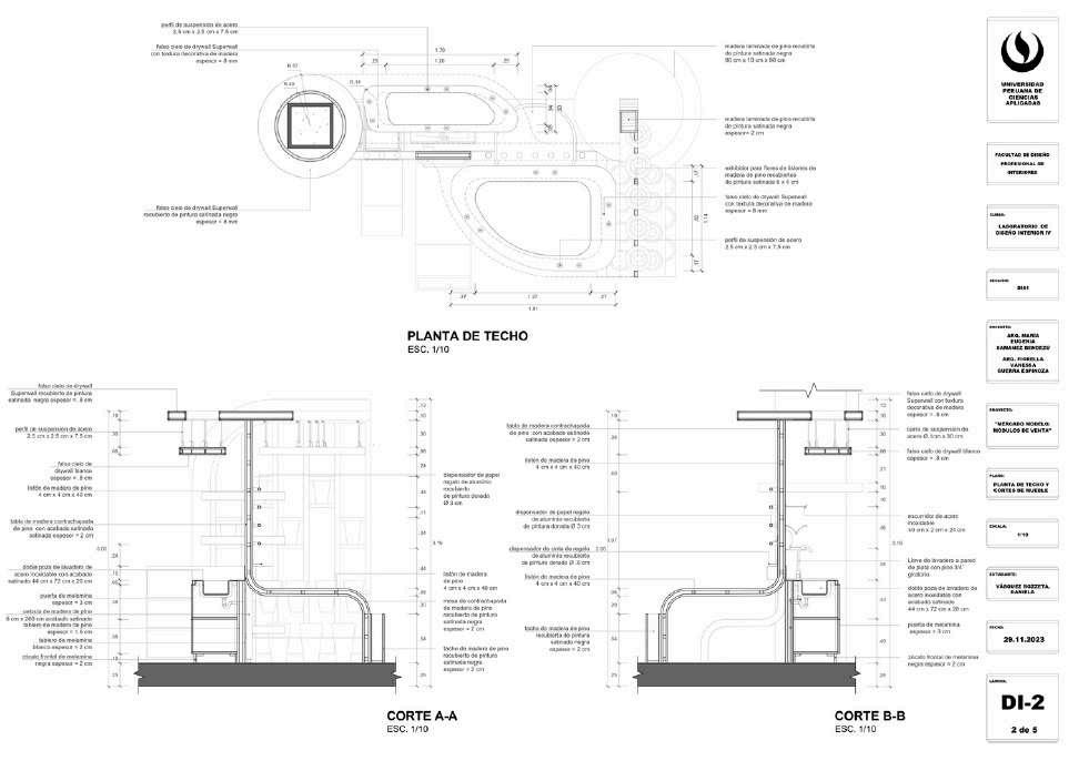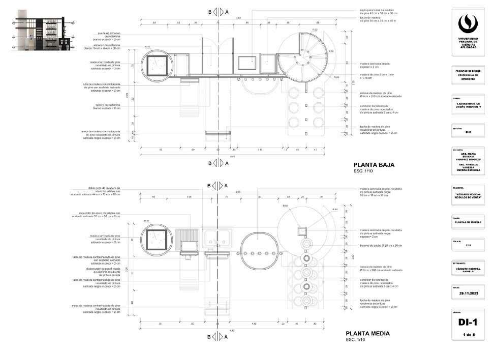De forma grupal se diseñaron planos en escala 1:50 para los dos niveles de la estructura: se trabajaron dos plantasytrescortesquepermitieranentendermejorlapropuesta.Posteriormente seelaboróunamaquetaen escala1:50mediantelaquesedetallóaunmayornivelelsectorizquierdodelproyecto.