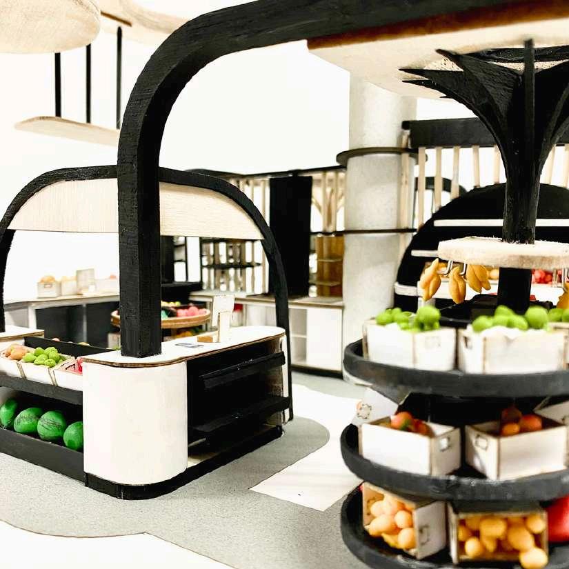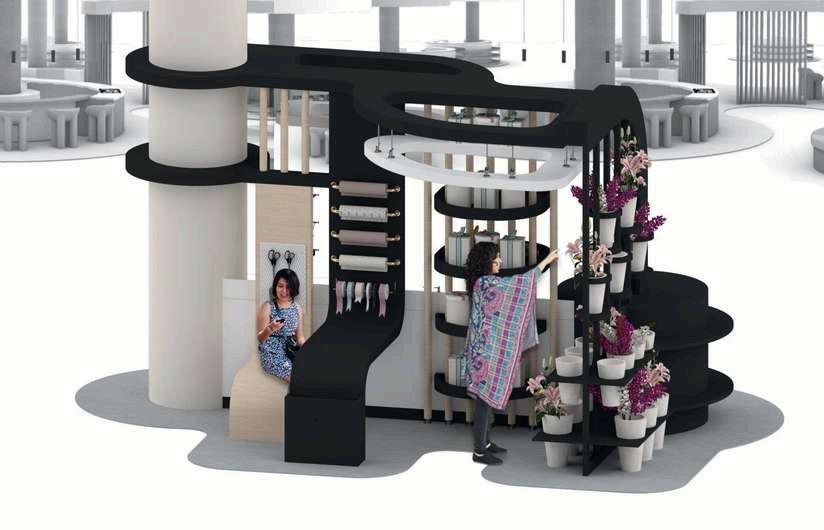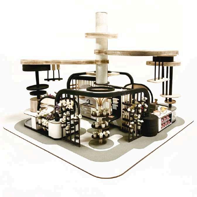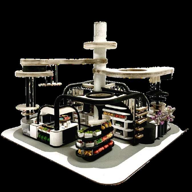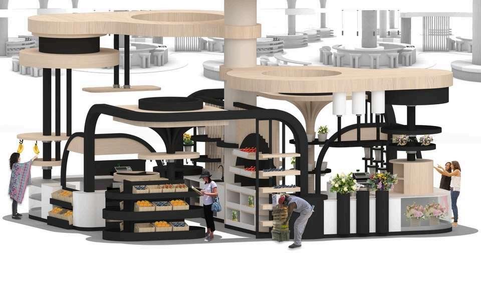 Se desarrolló a mayor detalle un sector de los módulos de venta que abarca tanto la zona de limpieza de productosdelpuestodefrutascomolazonadeexhibiciónyarmadodearreglosfloralesdelpuestodeflores