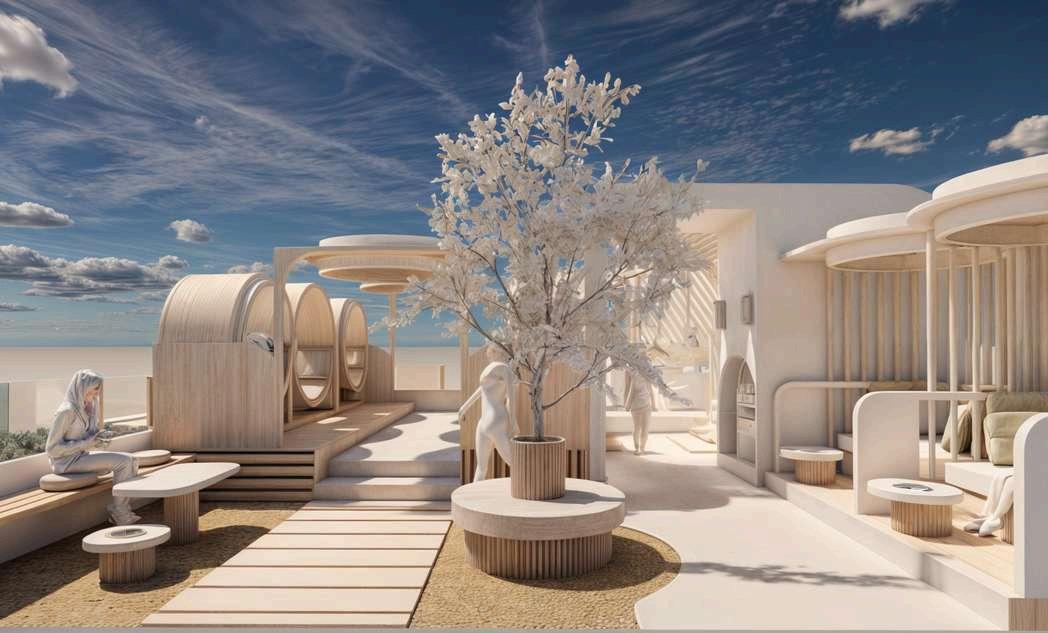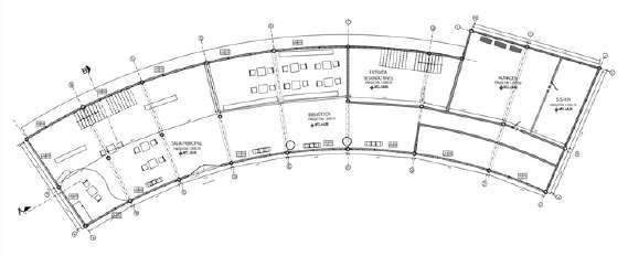 Dado que la edficación se encuentra en una zona rodeadadenaturaezaquesepuedeapreciardesdee nterior se optó por tomar as formas más representativas de dicho entorno e interpretarlas orgánicamente otorgándoes curvas y esqunas redondeadas Deesaforma setransmtensensaciones deunidadconelentornonatural ydesegurdadpara osusuariosdemenoredad.