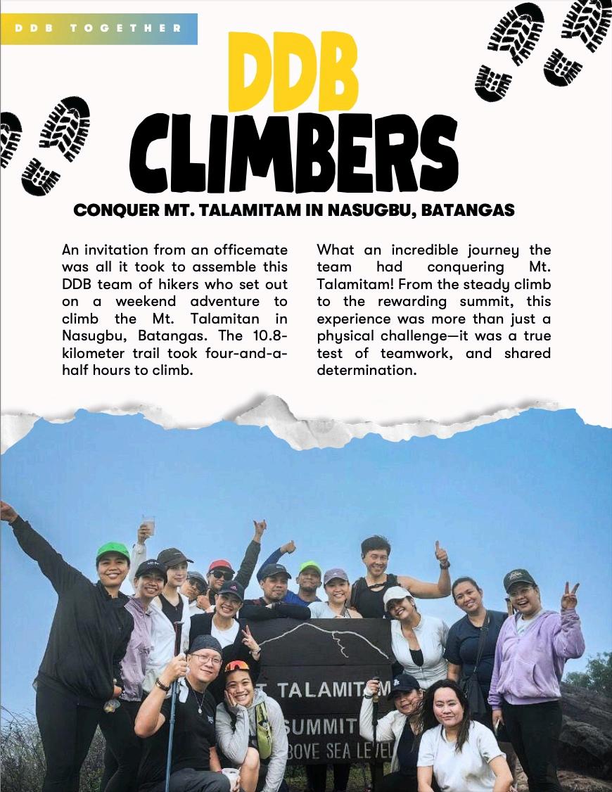 We continue to build our culture— scaling mountains (literally, with DDB Climbers in Batangas!), celebrating milestones (Optimax’s 7th Anniversary), and even embracing transformation (DDBiggest Loser winners announced).