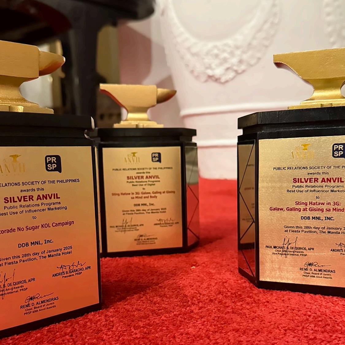 These award-winning campaigns include that of Sting energy drink and Gatorade, beverage brands owned by PepsiCo. The "Sting in 3G: Galaw, Galing at Gising sa Mind and Body" campaign won a Silver Anvil each for Best Use of Digital and Best Use of Influencer Marketing, while the Gatorade No Sugar KOL Campaign won Silver for Best Use of Influencer Marketing.