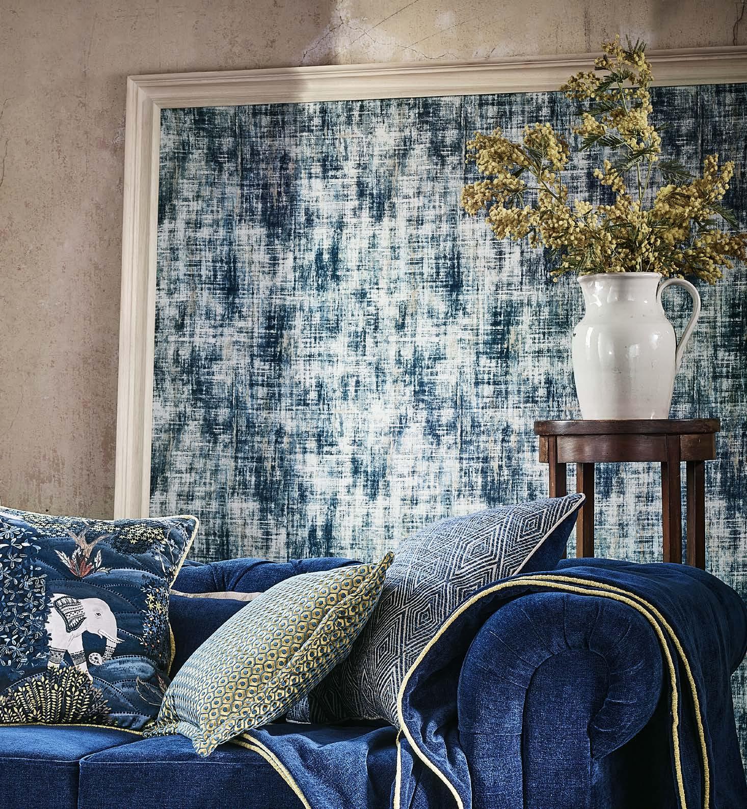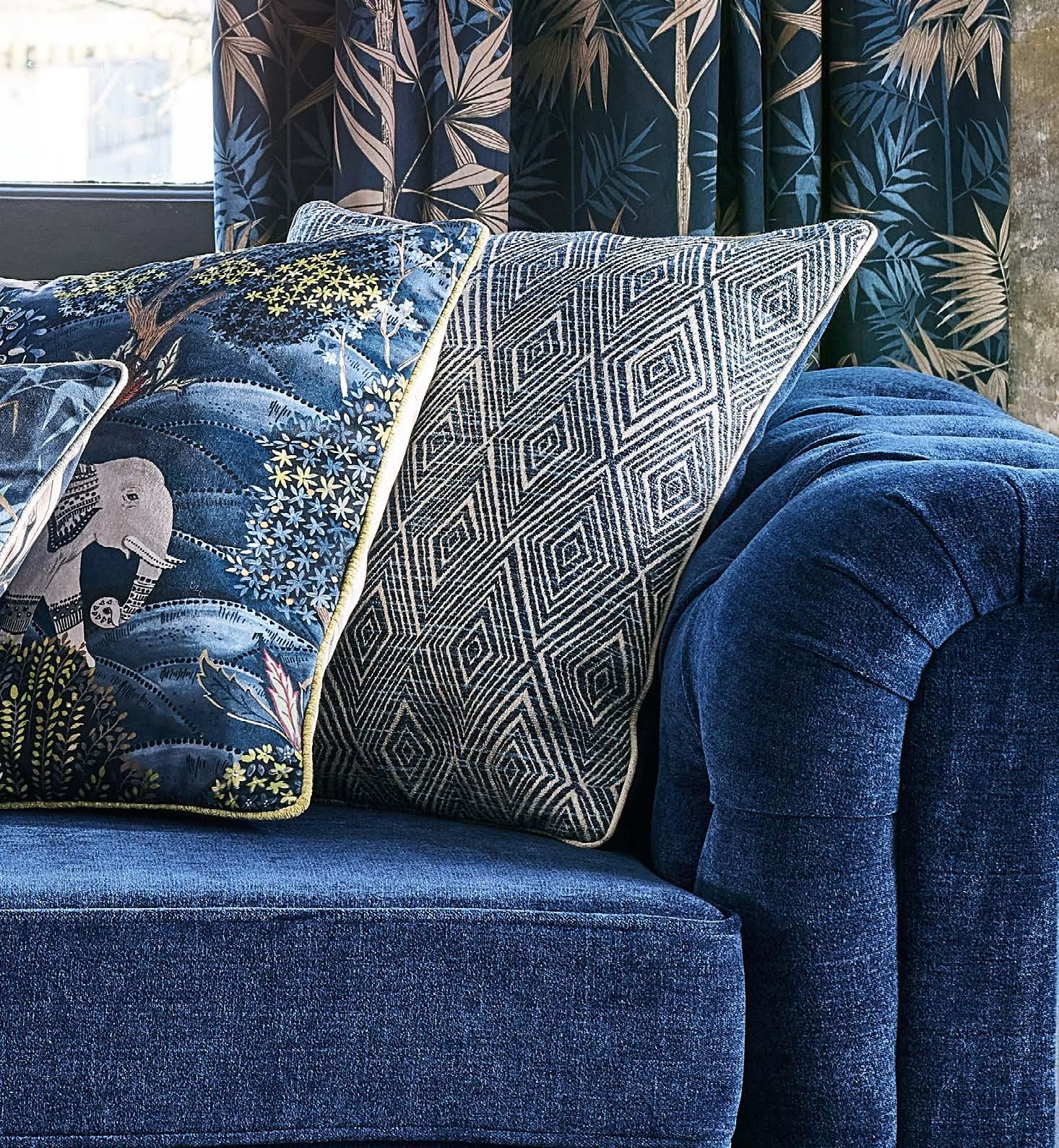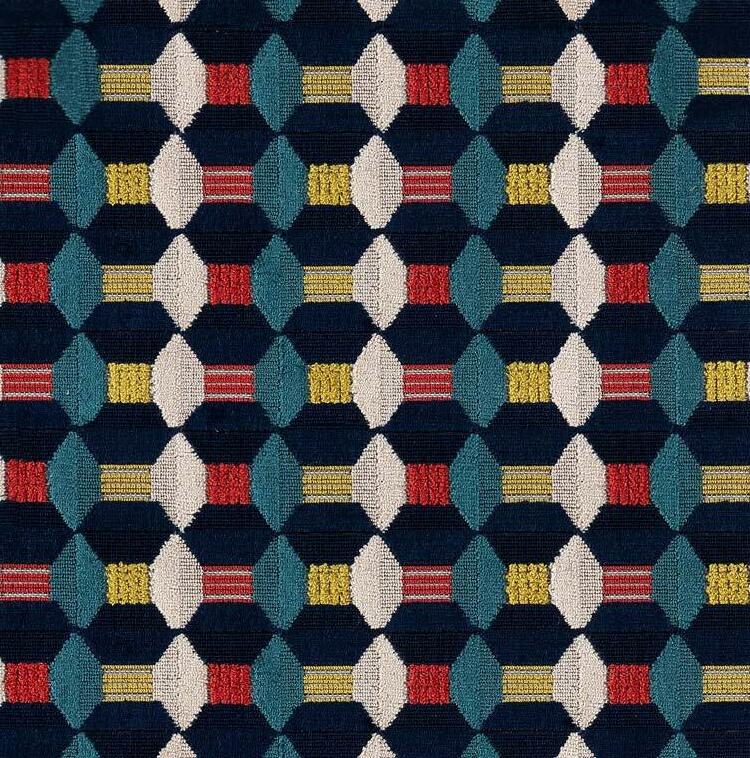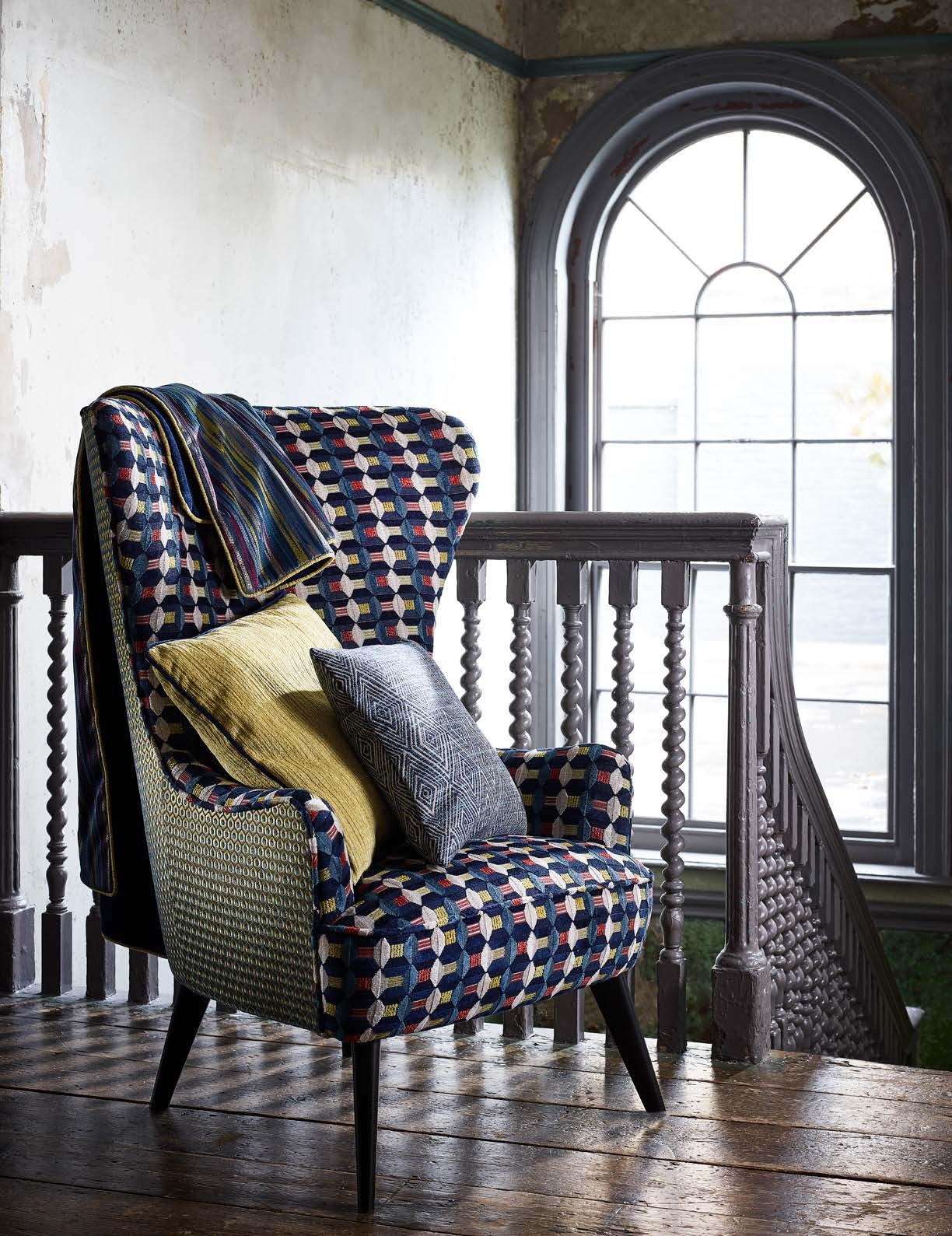 Malabar is nestled together with smart geometric velvets, wovens and rich embroideries.