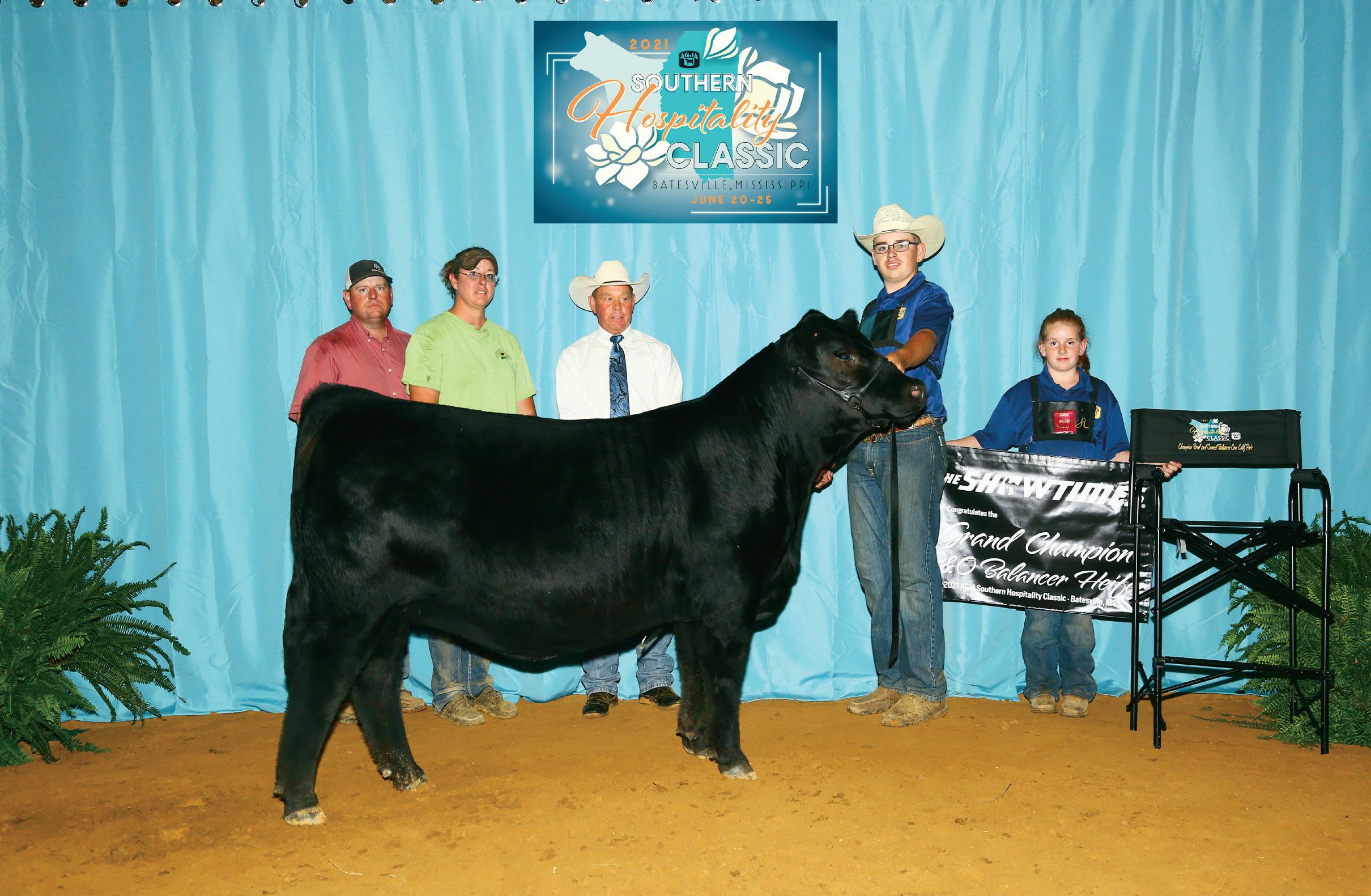 CHAMPION BALANCER SENIOR YEARLING FEMALE GHGF 201G Karley Rumfelt, Phillipsburg, Mo. Sire: Gambles Hot Rod 9620 RESERVE CHAMPION BALANCER SENIOR HEIFER CALF GCRK LHC Vicki 0137H ET Molly Anderson, Marion, N.C. Sire: SAC Conversation JS02