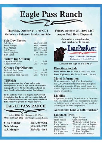 Auctioneers: Lynn & Seth Weishaar 34261 200th St. Highmore, SD 5734 Office (605) 229-2802 info@eaglepassranch.com