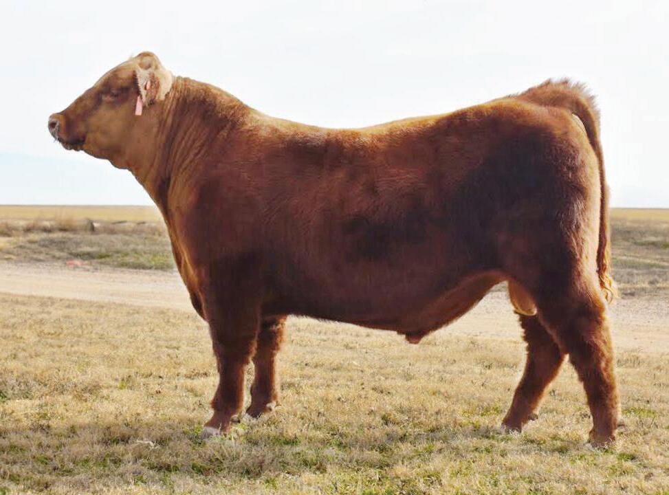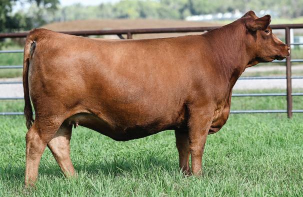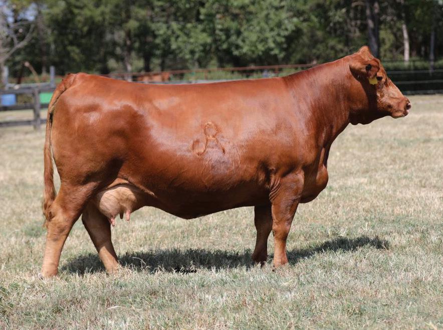 MS ENCORE 3628L Reg. Number 1602838 Diluter free red fall calving bred heifer.