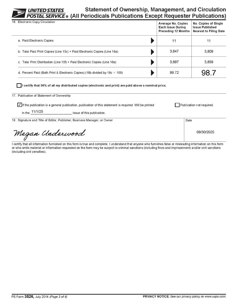 COVER PHOTO BY MEGAN UNDERWOOD, M.S. EDITOR MEGAN UNDERWOOD, M.S. GRAPHIC DESIGN MALERIE MARKLEY