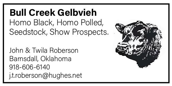 Koehn 73243 Carter Rd., Goltry, Okla. 580-541-2633 koehncattlecompany@gmail.com