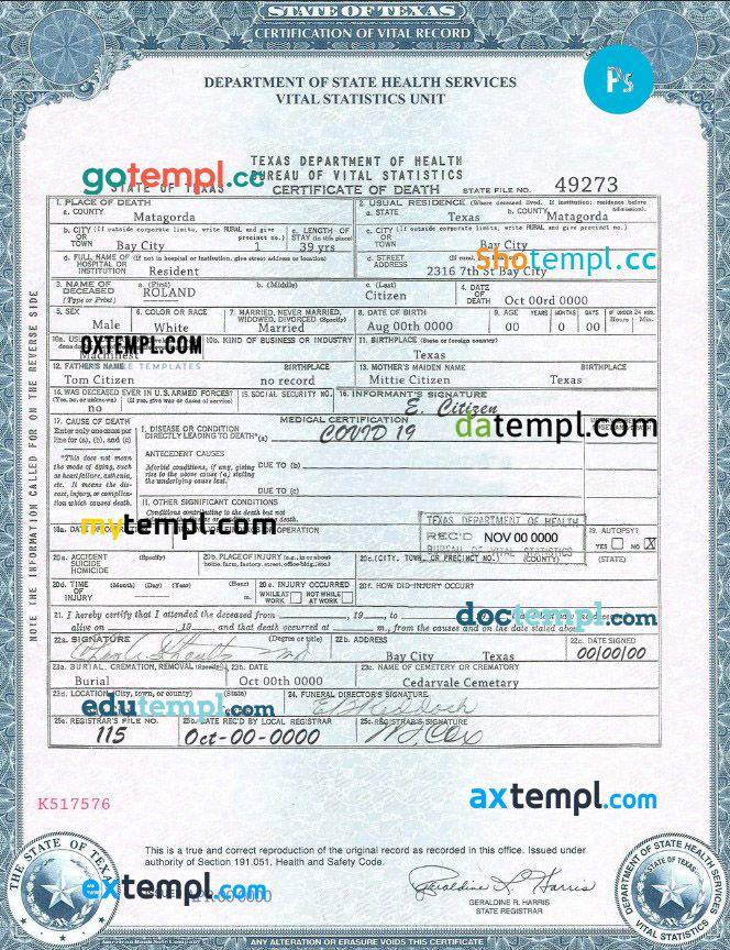 A death certificate is either a legal document issued by a medical practitioner, which states when a person died, or a document that declares the date, location and cause of a person’s death.