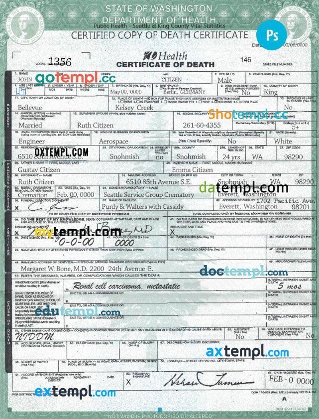 Here you see Washington state death certificate sample at the best price.