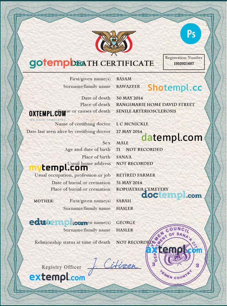 A death certificate is an official document issued by the government, which declares the cause of death, location of death, time of death and some other personal information about the deceased.