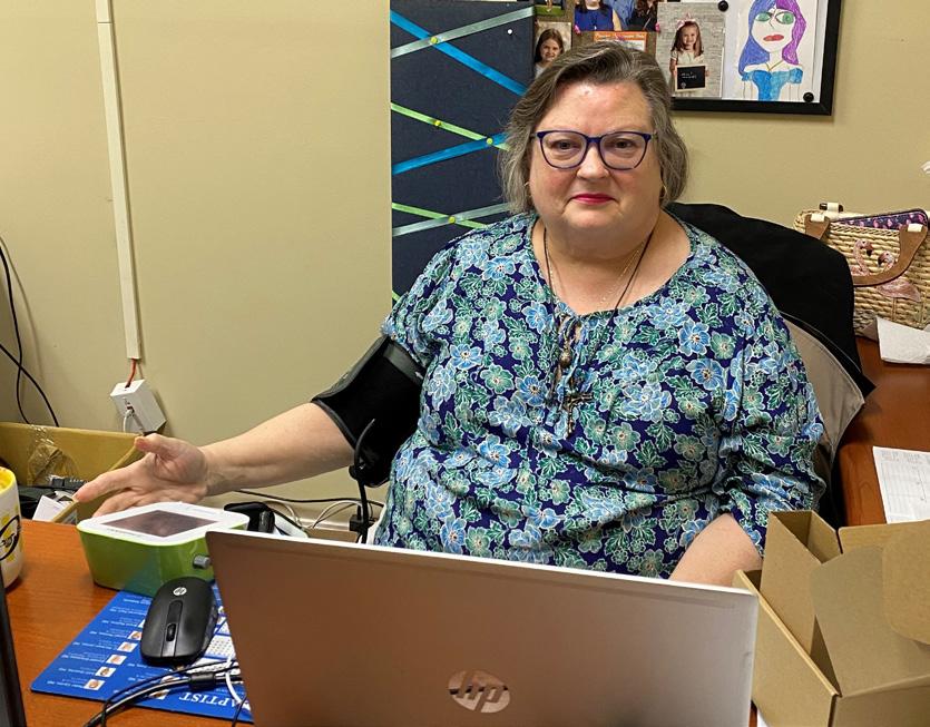 Deacon Catherine Schiesz works for a program called Remote Patient Monitoring. Patients are given a cuff to take home and get readings taken every day, so their doctors are able to monitor them daily. Catherine says “It’s a lot of fun and I get to visit with some lovely people.”.