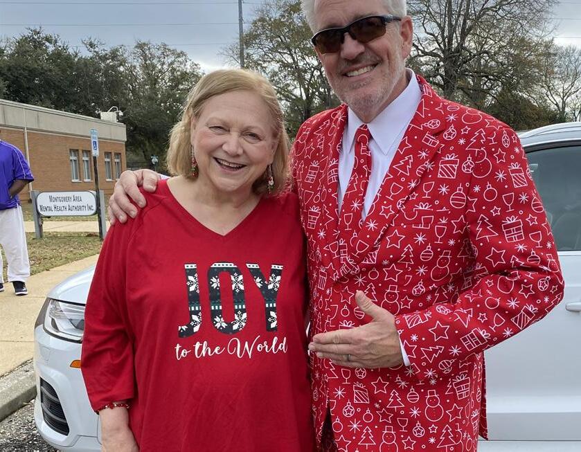 Deacon Judy Neil delivering gifts to friends of Mental Health America in Montgomery.