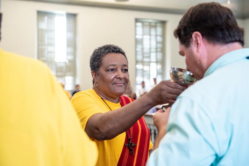 Celebrating the Eucharist at The Abbey, in the fellowship hall of Zion Spring Baptist Church.